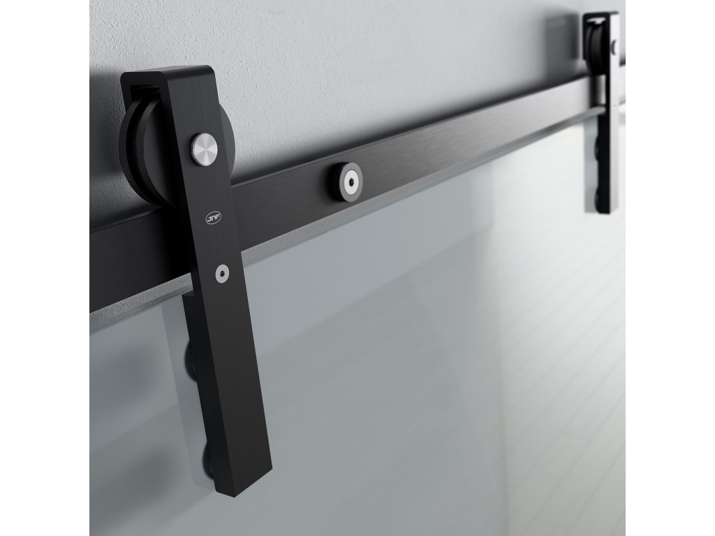 Kování pro posuvné skleněné dveře od renomovaného portugalského výrobce JNF. Systém PS Charriot je určen na dřevěné dveře šířky 600 - 900 mm s maximální váhou dveřního křídla do 60 kg. Skleněné dveře nejsou součástí posuvného systému.
