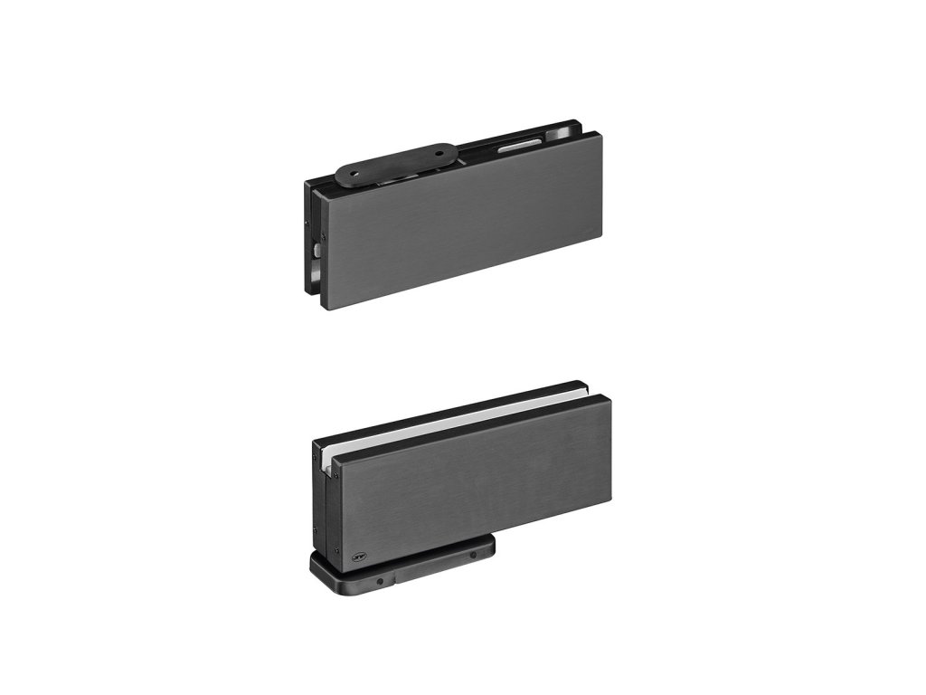 Hydraulický pivotový samouzavírací set IN.81.203 pro skleněné dveřní křídlo je vyrobený z vysoce kvalitní nerezavějící oceli.