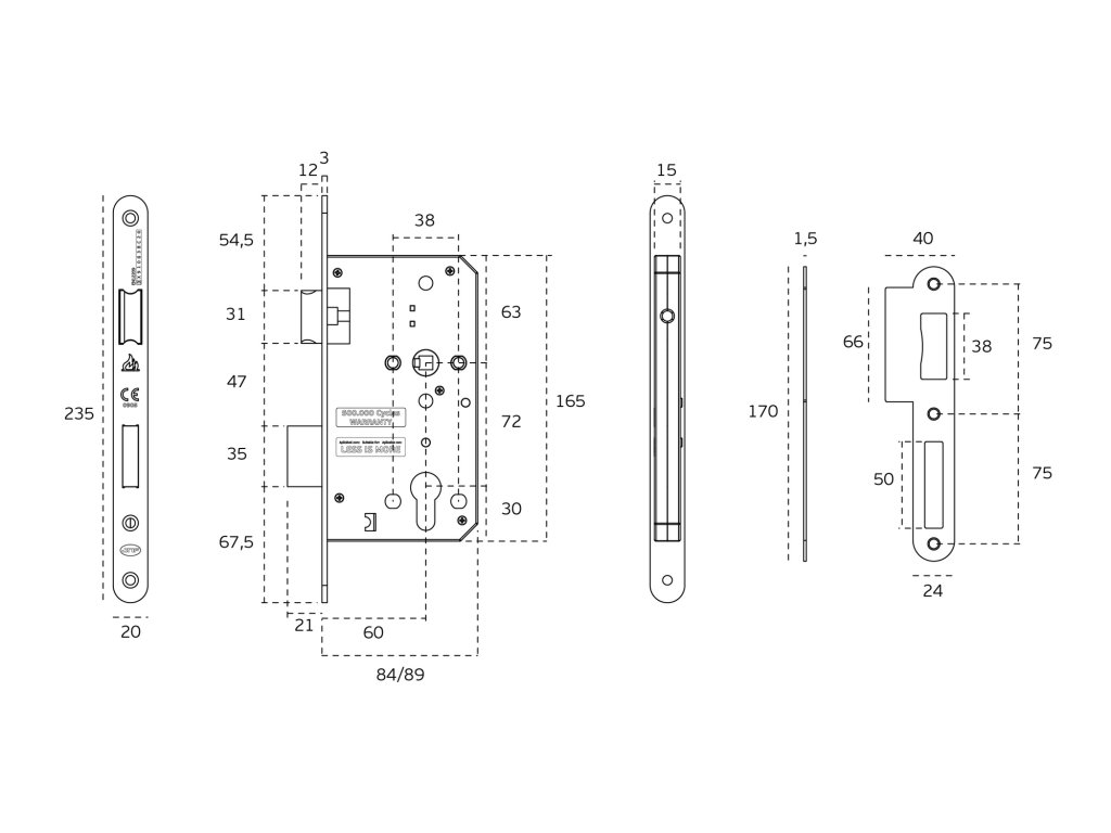 Dormas: 60 mm (vzdálenost osy kliky od lišty zámku)
