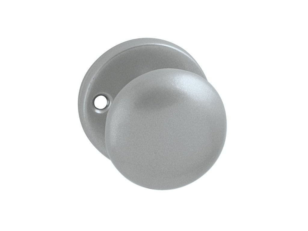Dveřní přímá koule na kulaté rozetě je vyrobena z hliníku a je povrchově upravena. Koule má průměr 53 mm a kulatá rozeta má tloušťku 8 mm.