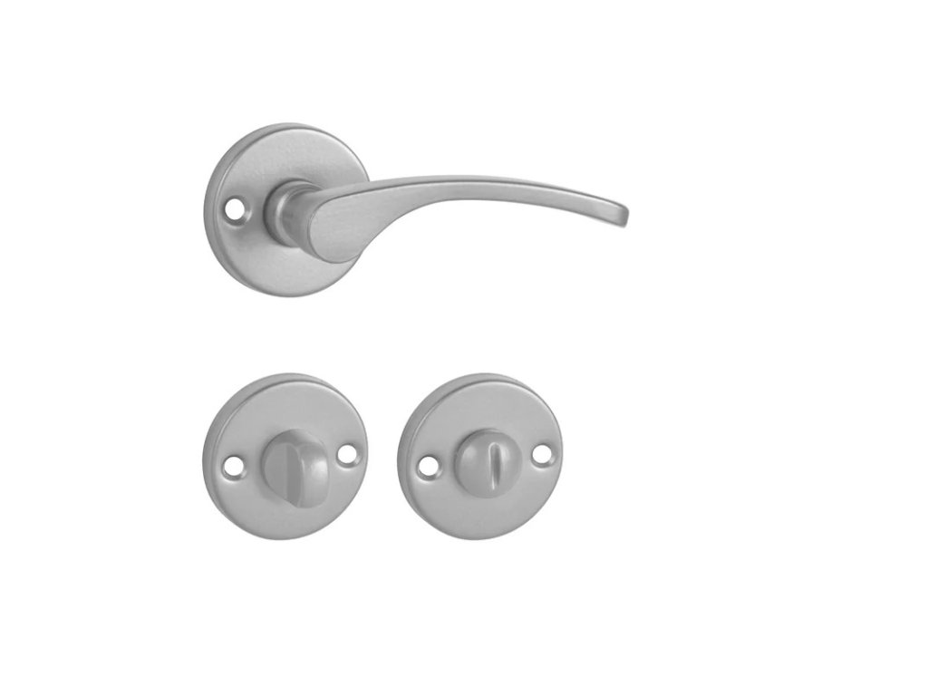 Rozetová klika na interiérové dveře s kulatou rozetou je vyrobena z hliníku a je povrchově upravena. Rozeta má průměr 54 mm a tloušťku 8 mm.