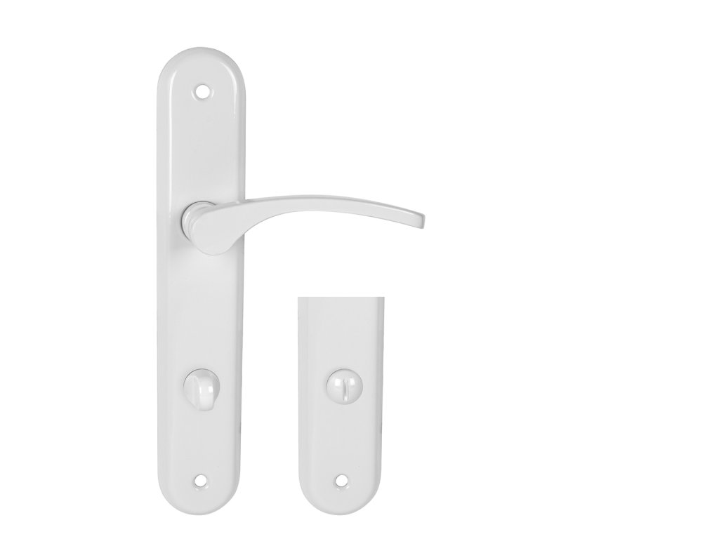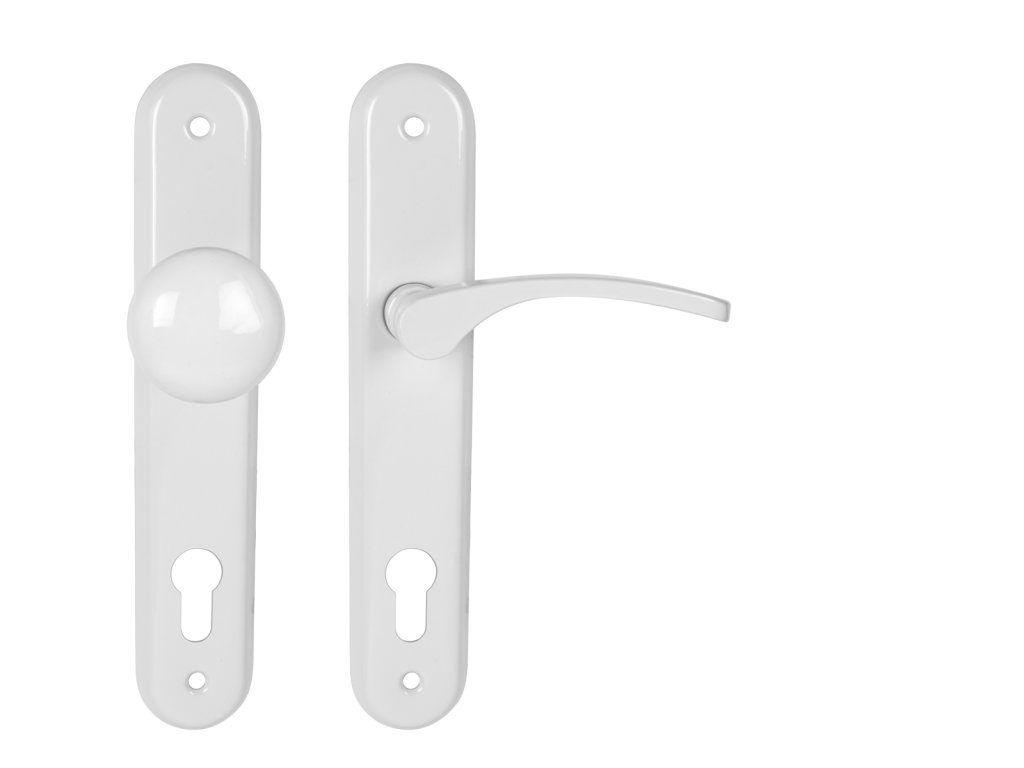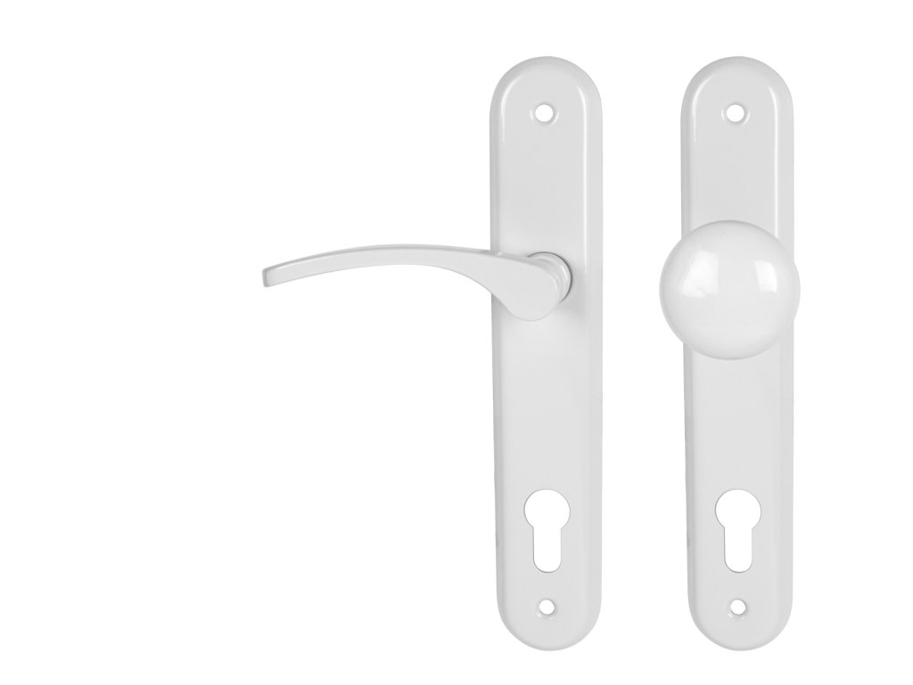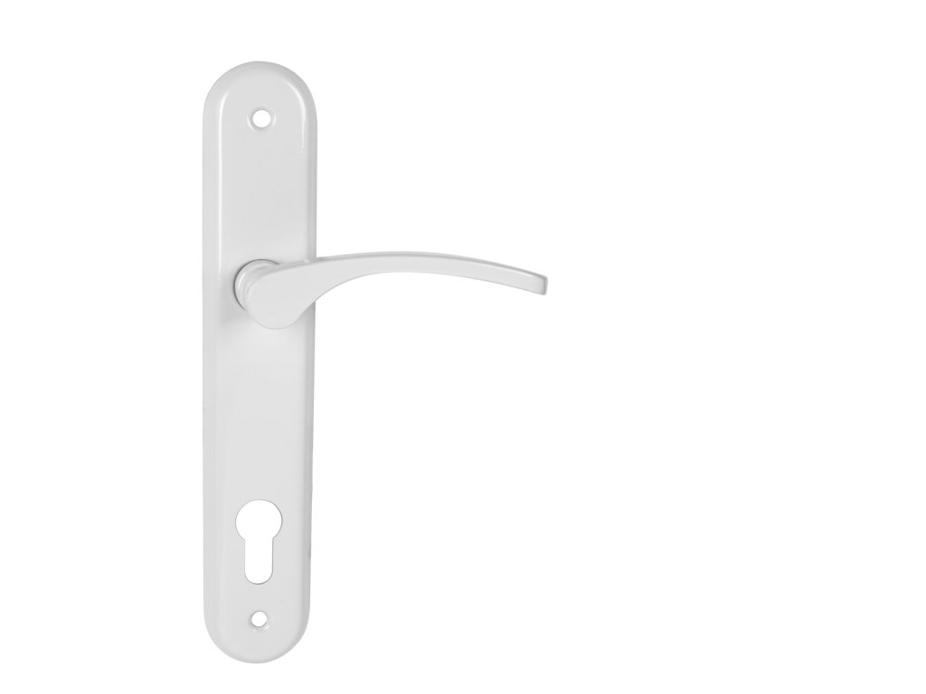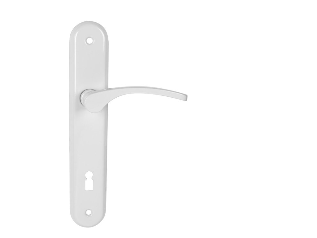 Štítová klika na interiérové dveře s oválným štítem je vyrobena z hliníku a je povrchově upravena. Oválný štít má rozměry 42 mm x 230 mm a klika neobsahuje vratný mechanismus.
