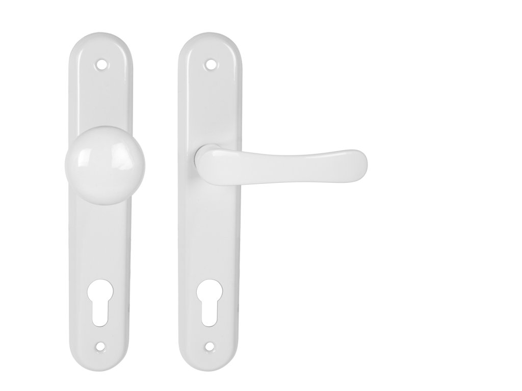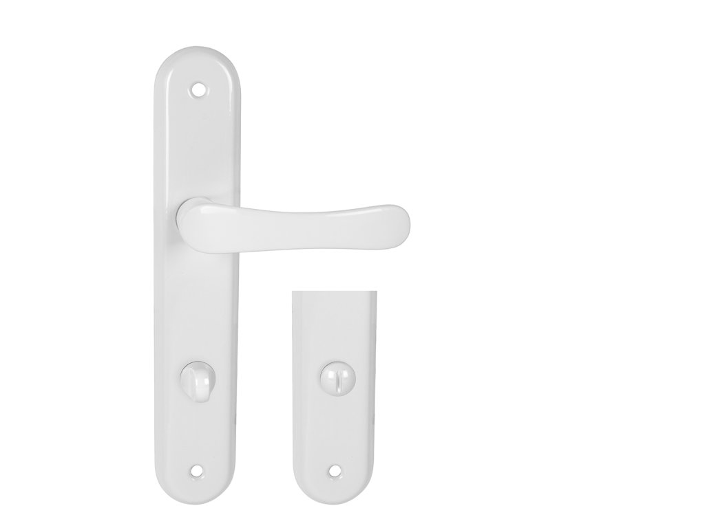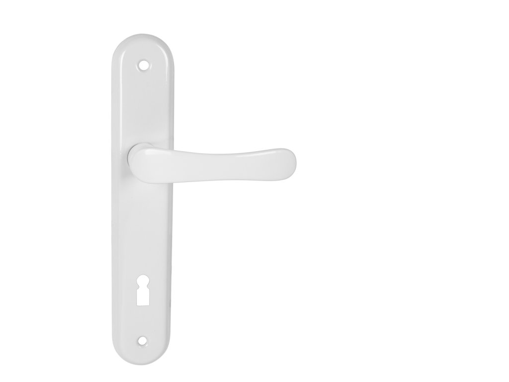 Štítová klika na interiérové dveře s oválným štítem je vyrobena z hliníku a je povrchově upravena. Oválný štít má rozměry 42 mm x 230 mm a klika neobsahuje vratný mechanismus.