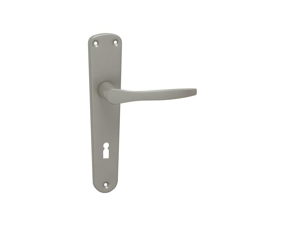Štítová klika na interiérové dveře s oválným štítem je vyrobena z hliníku a je povrchově upravena. Oválný štít má rozměry 42 mm x 204 mm a klika neobsahuje vratný mechanismus.