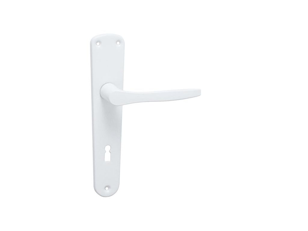 Štítová klika na interiérové dveře s oválným štítem je vyrobena z hliníku a je povrchově upravena. Oválný štít má rozměry 42 mm x 204 mm a klika neobsahuje vratný mechanismus.