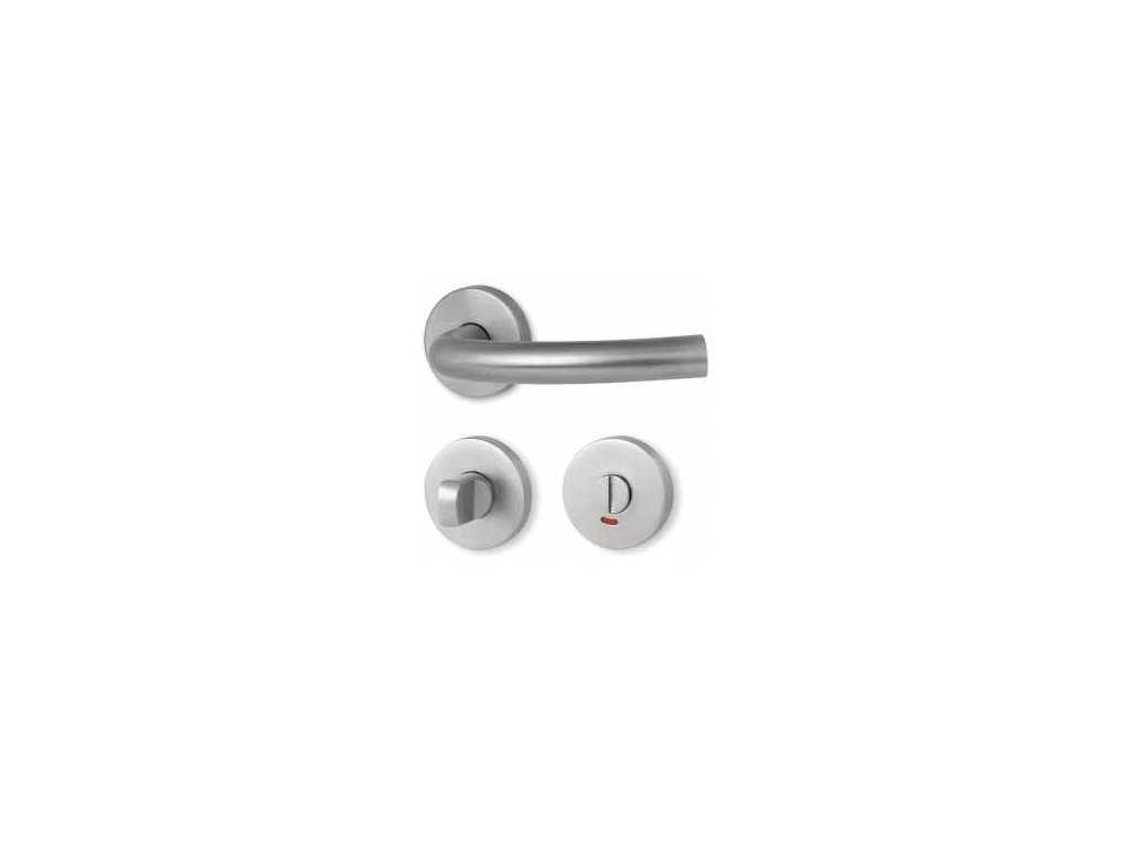 Dveřní klika METAL TUBE MT 03 s kulatou rozetou, z nerez oceli DIN 1.4301, s matným povrchem, vhodná pro interiér i exteriér.