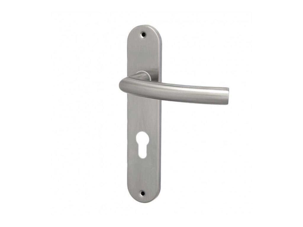 Odlehčená dveřní klika MTS 06 LIGHT se štítem je vhodná k instalaci do interiéru i exteriéru, vyrobená z nerezové oceli DIN 1.4301 se satinovaným matným povrchem s moderním a nadčasovým designem, hygienicky nezávadná, s dlouhou životností.