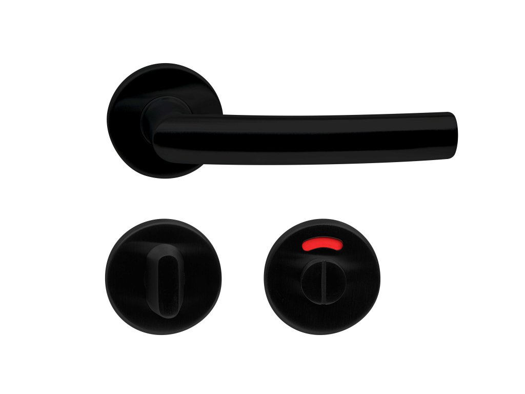 Nerezové kování na kulatých rozetách s vratnou pružinou klik.
