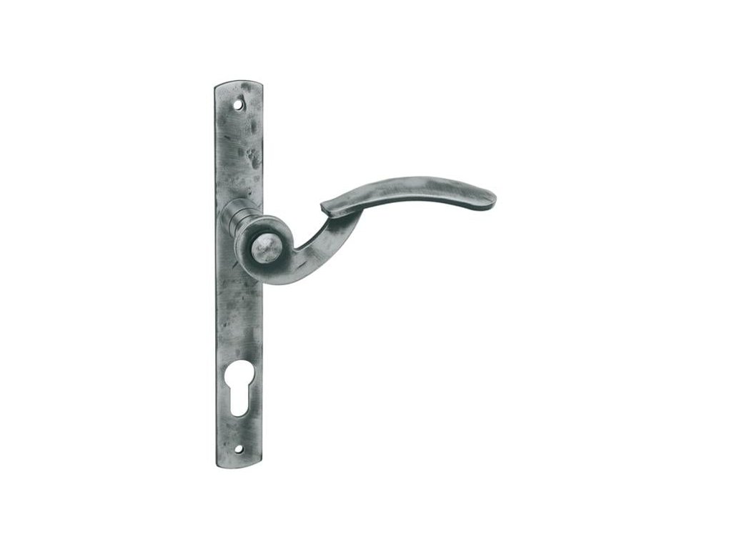 Štítová klika na interiérové dveře s kovaným štítem je vyrobena z kovaného železa a je povrchově upravena.