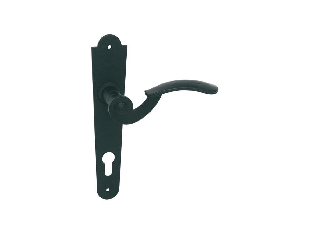 Štítová klika na interiérové dveře s kovaným štítem je vyrobena z kovaného železa a je povrchově upravena.