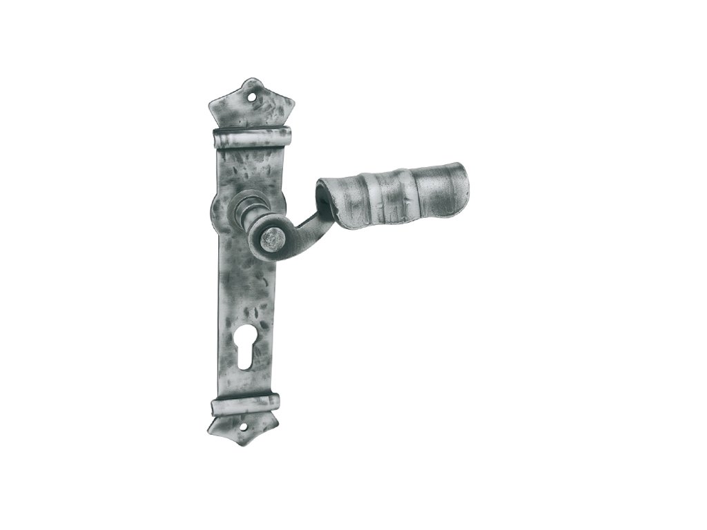 Štítová klika na interiérové dveře s kovaným štítem je vyrobena z kovaného železa a je povrchově upravena.