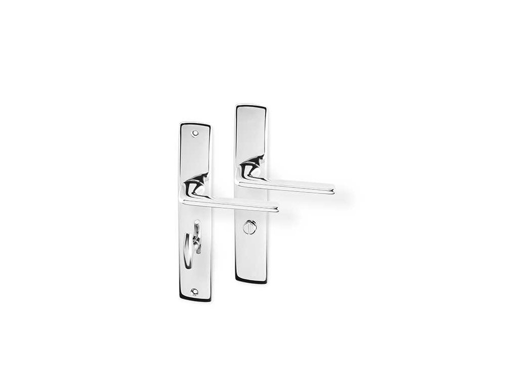 Chromové štítové kování se zajímavým designem krycího štítku.