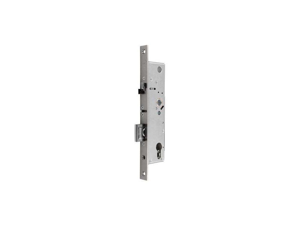 Po uzavření dveří je zajišťovací střelka společně s hlavní střelkou zatlačena o protiplech do těla zámku a po vyskočení hlavní dělené střelky dojde k automatickému vysunutí závory (háků) a následnému zablokování hlavní střelky. Zámek je pevně uzamčen ve dvou (u vícebodového zámku ve čtyřech) bodech. Otevření zámku je možné pomocí cylindrické vložky z obou stran. Zámek je samozamykací, tzn. nejde pomocí cylindrické vložky ručně uzamknout, ale pouze odemknout.