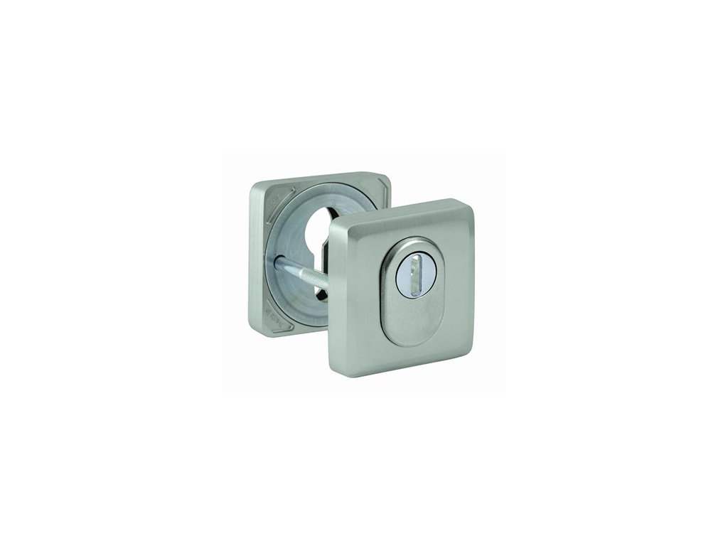 Bezpečnostní hranatá rozeta s překrytím cylindrické vložky je vyrobena z materiálů vysoké kvality - mosaz a je povrchově upravena.