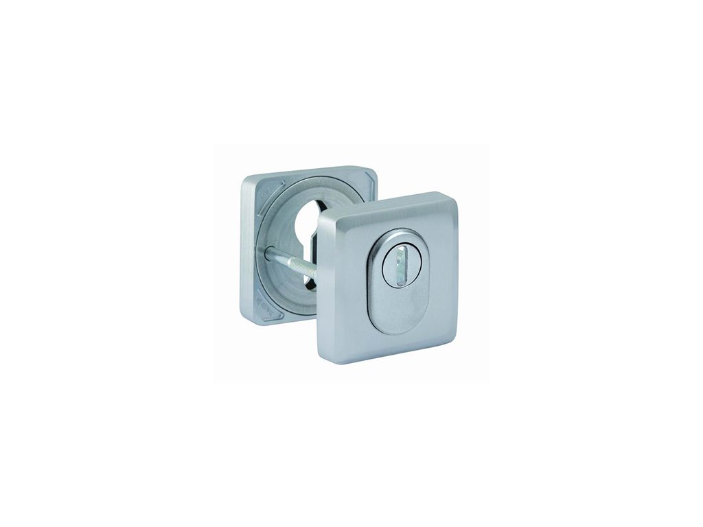 Bezpečnostní hranatá rozeta s překrytím cylindrické vložky je vyrobena z materiálů vysoké kvality - mosaz a je povrchově upravena.
