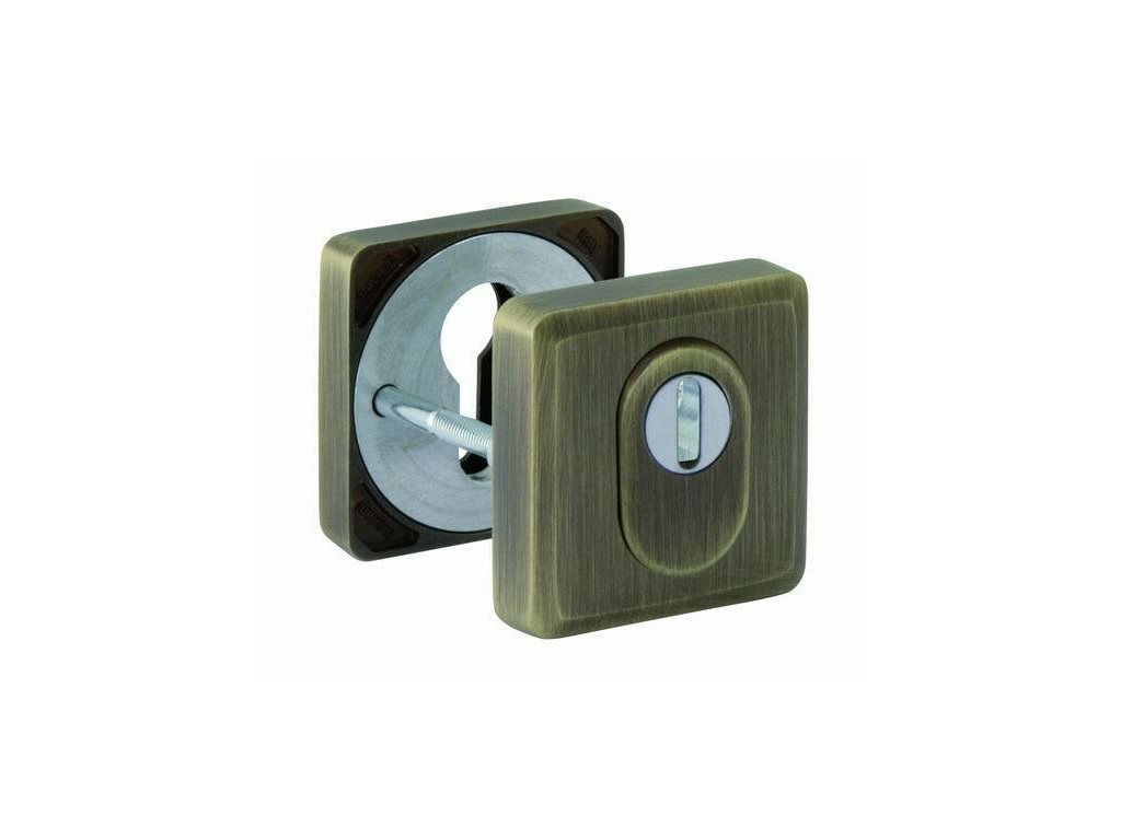 Bezpečnostní hranatá rozeta s překrytím cylindrické vložky je vyrobena z materiálů vysoké kvality - mosaz a je povrchově upravena.