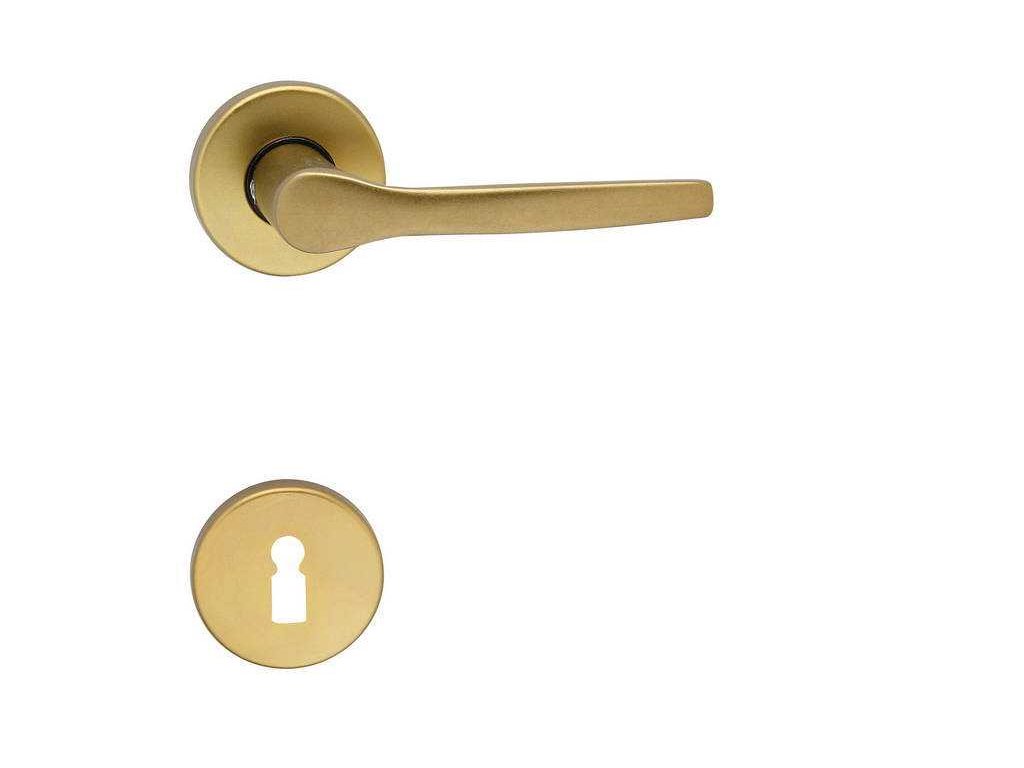Hliníkové rozetové kování s kulatými rozetami.