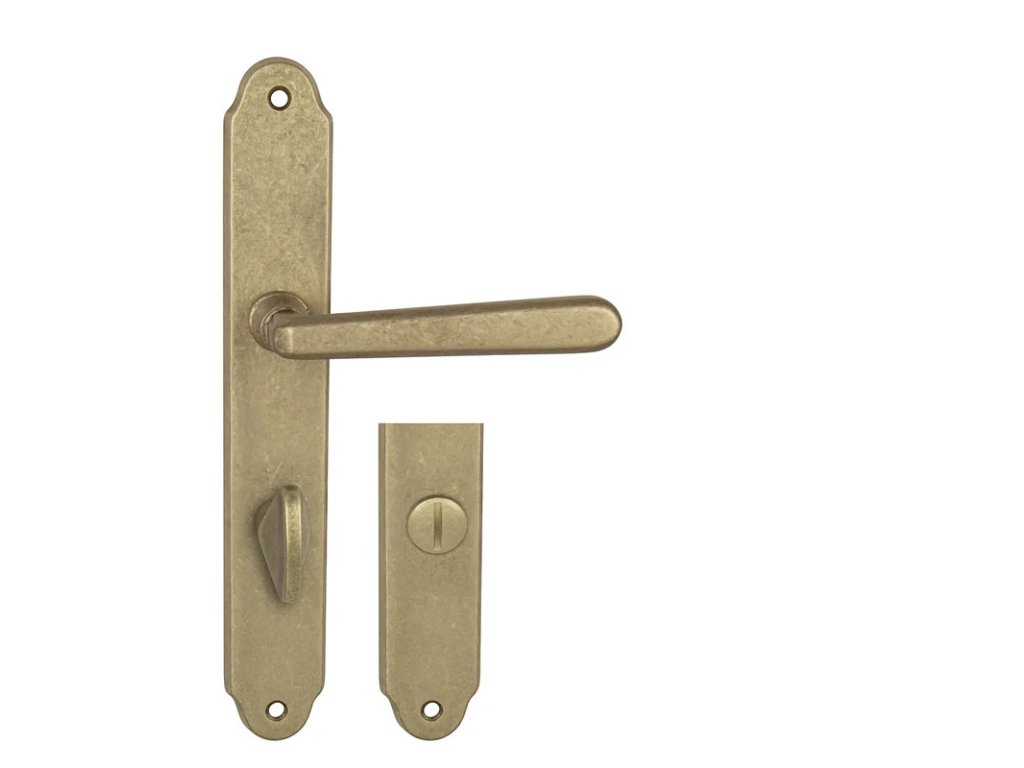 Štítová klika na interiérové dveře s rustikálním štítem je vyrobena z materiálů vysoké kvality - mosaz a je povrchově upravena. Rustikální štít má rozměry 36 mm x 238 mm.