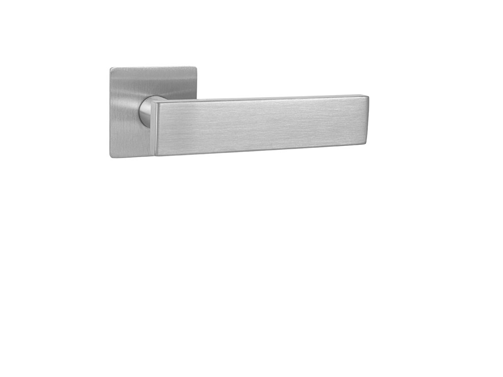 Rozetová klika na interiérové dveře s magnetickou plochou hranatou rozetou je vyrobena z vysoce kvalitní nerezavějící oceli, známé jako nerez a je povrchově upravena. Rozeta má rozměry 55 mm x 55 mm a tloušťku jen 3 mm. Je barevně stabilní a odolná vůči opotřebení. Kování je testováno podle normy EN 1906 na 200 000 cyklů.