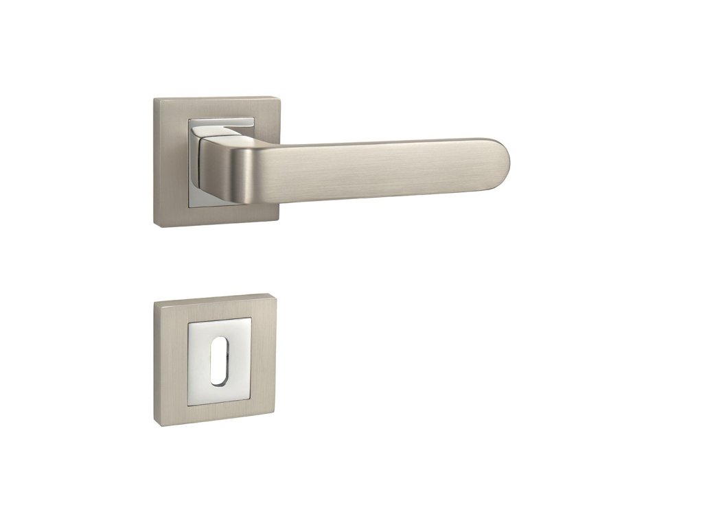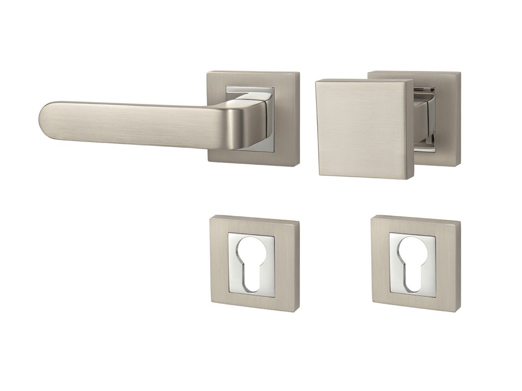 Rozetová klika na interiérové dveře s hranatou rozetou je vyrobena odléváním z kvalitních slitin zinku a hliníku a je povrchově upravena. Rozeta má rozměry 52 mm x 52 mm a tloušťku 10 mm. Klika je povrchově upravována galvanizací a vyznačuje se vysokou odolností proti korozi. Kování je testováno na 100 000 cyklů.