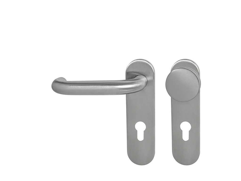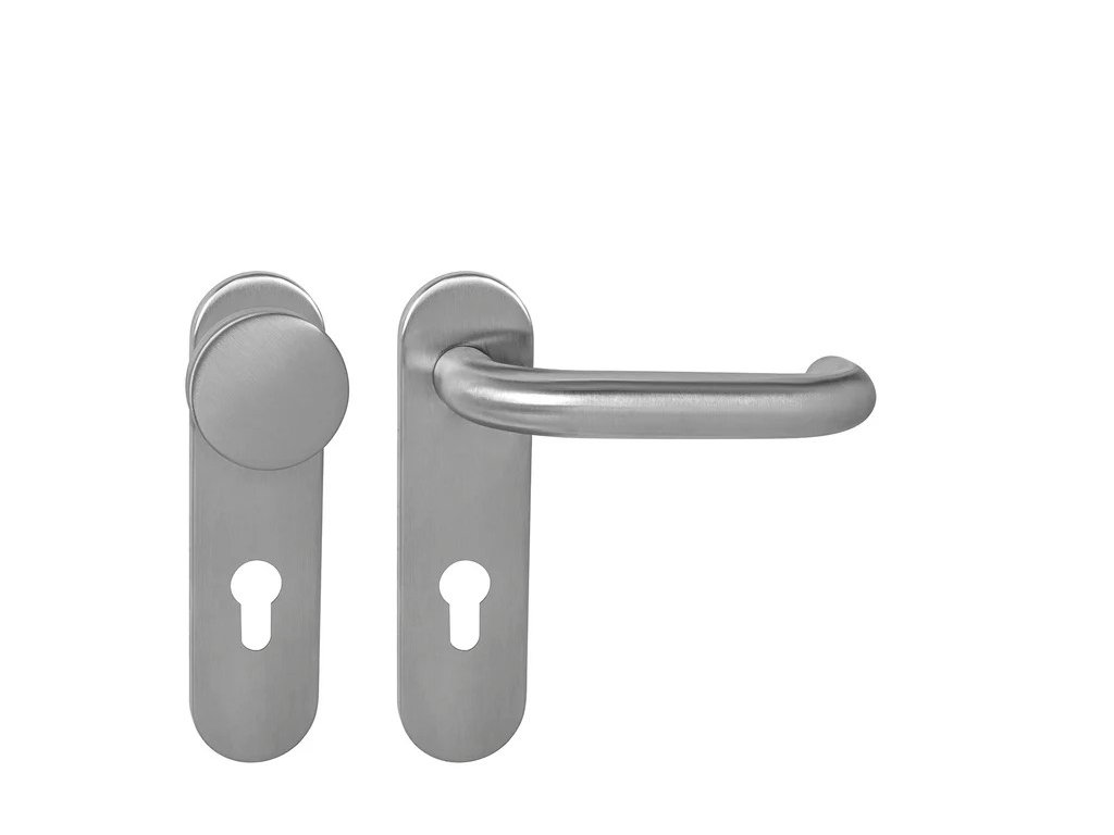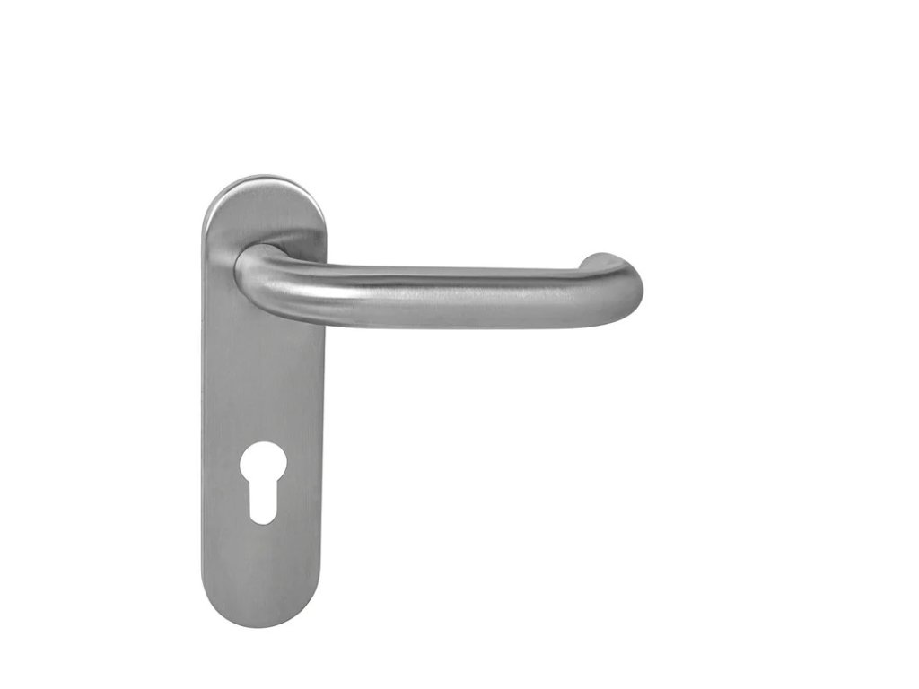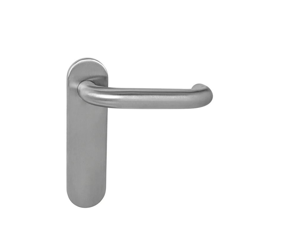 Štítová klika na interiérové dveře s krátkým oválným štítem je vyrobena z vysoce kvalitní nerezavějící oceli, známé jako nerez a je povrchově upravena. Krátký oválný štít má rozměry 44 mm x 168 mm.