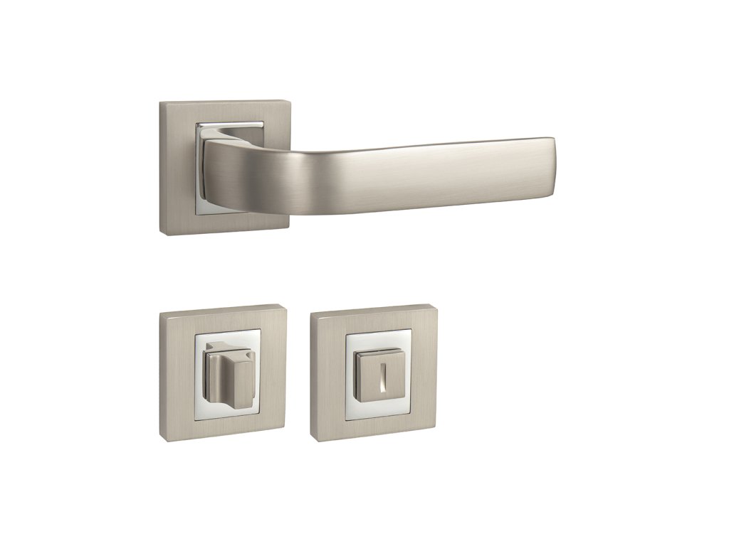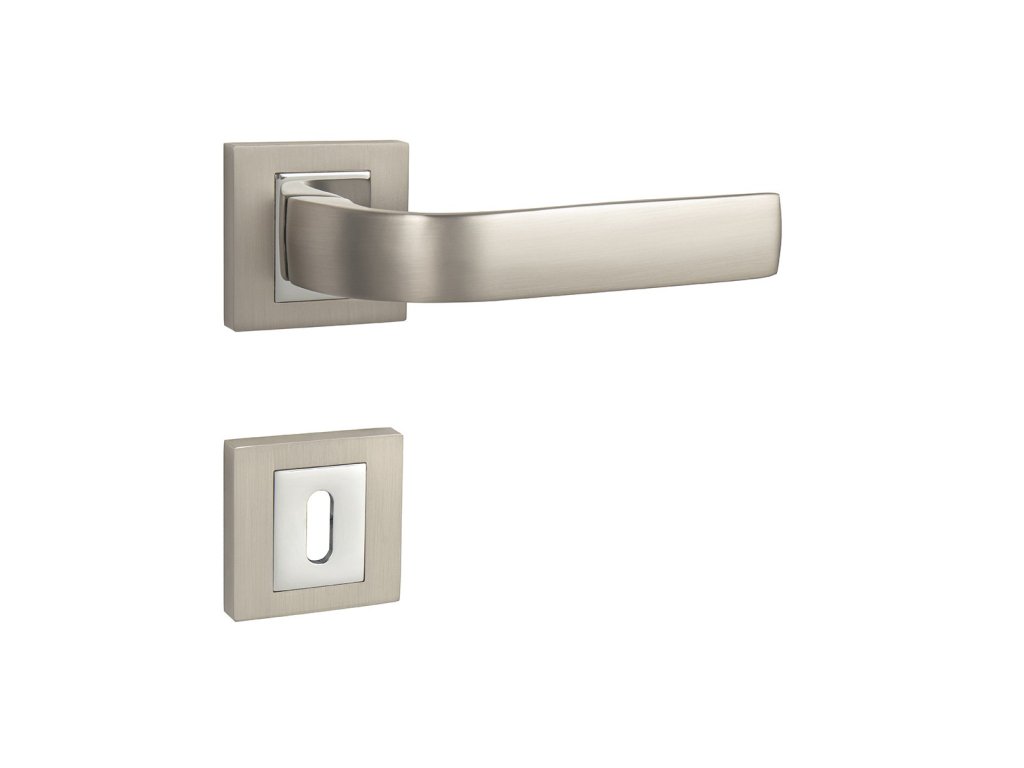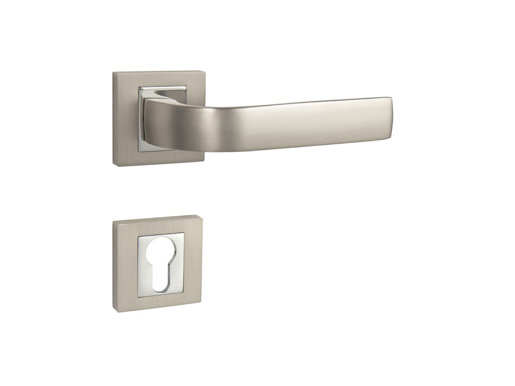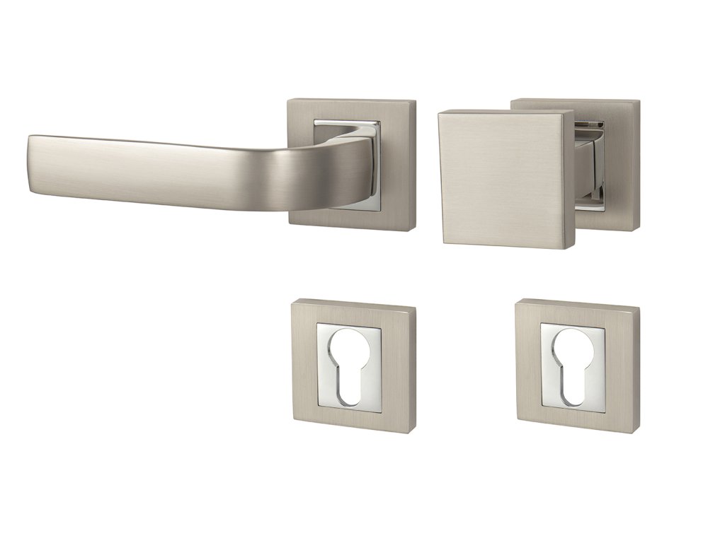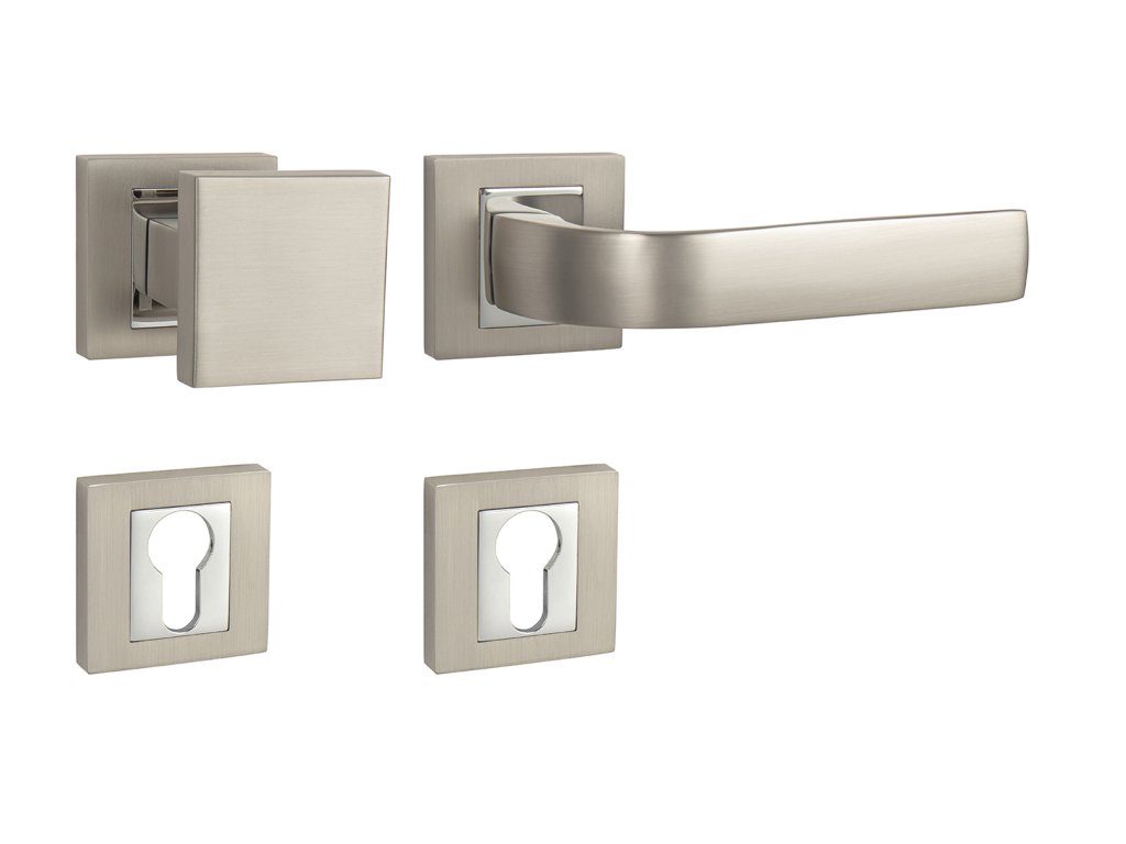 Rozetová klika na interiérové dveře s hranatou rozetou je vyrobena odléváním z kvalitních slitin zinku a hliníku a je povrchově upravena. Rozeta má rozměry 52 mm x 52 mm a tloušťku 10 mm. Klika je povrchově upravována galvanizací a vyznačuje se vysokou odolností proti korozi. Kování je testováno na 100 000 cyklů.