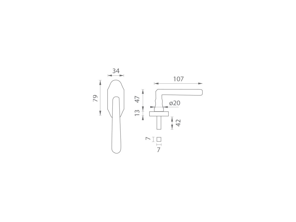Rozeta má rozměry 34 mm x 79 mm a tloušťku 13 mm.