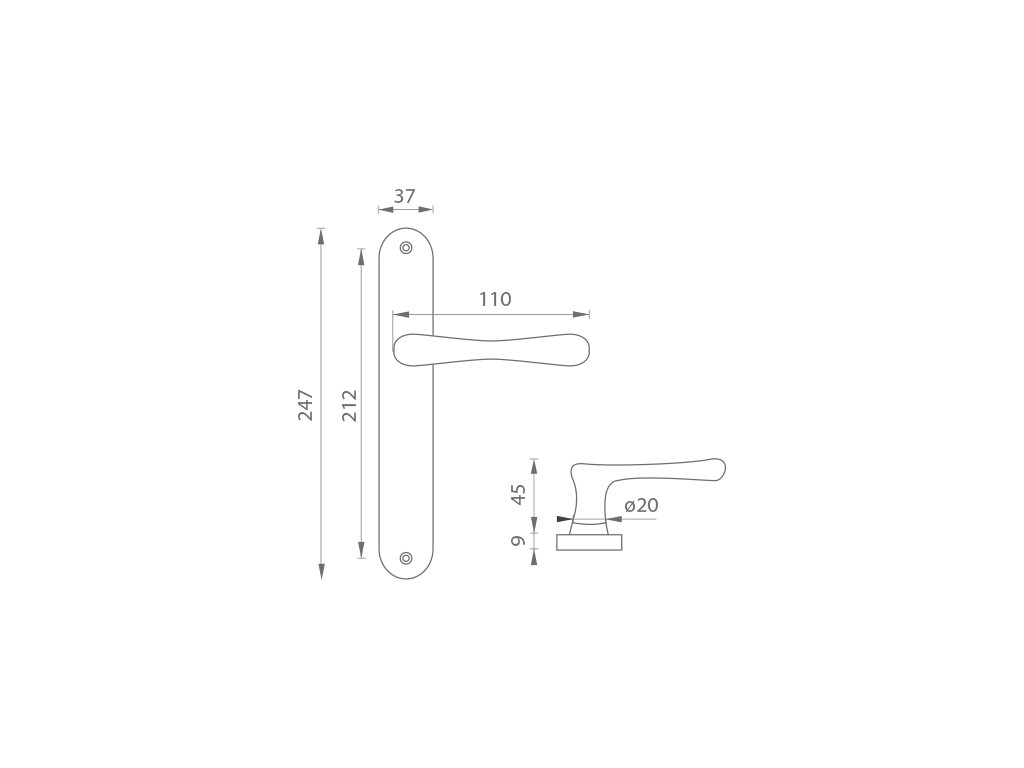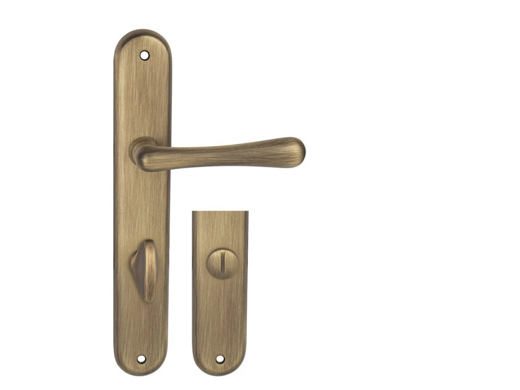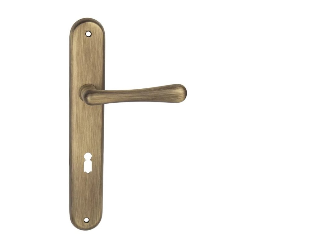 Štítová klika na interiérové dveře s oválným štítem je vyrobena z materiálů vysoké kvality - mosaz a je povrchově upravena. Oválný štít má rozměry 37 mm x 247 mm.