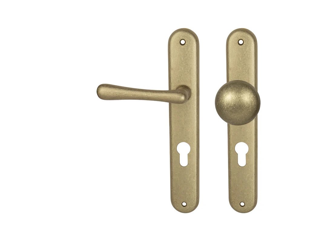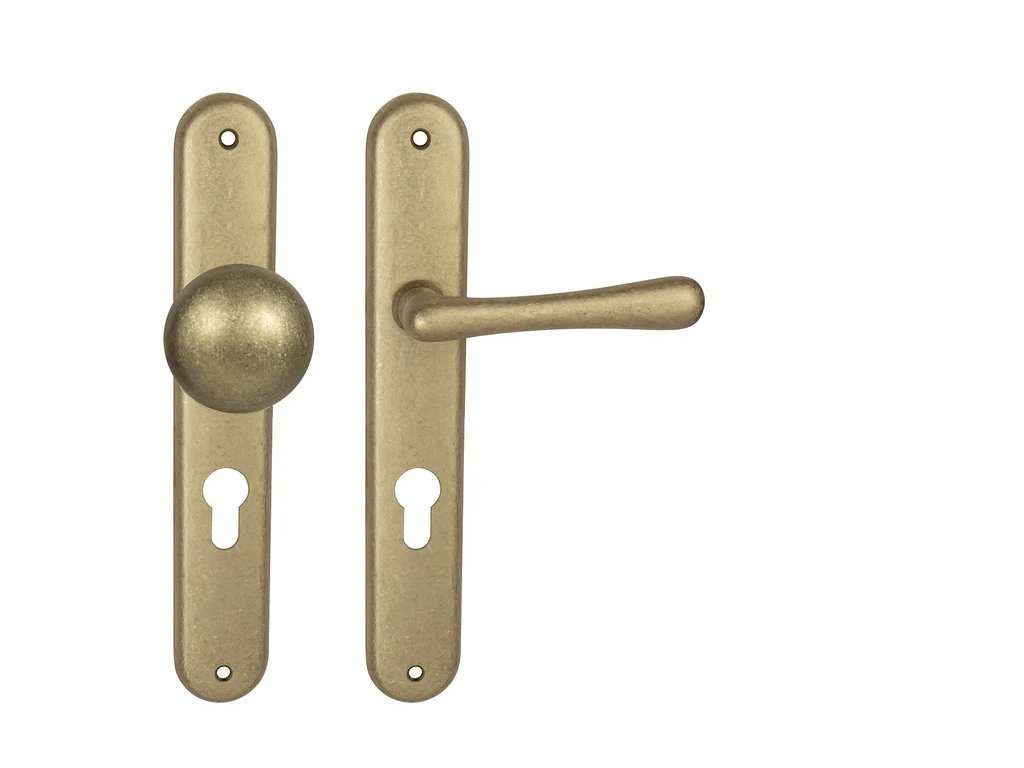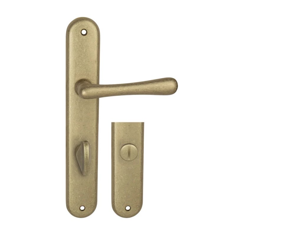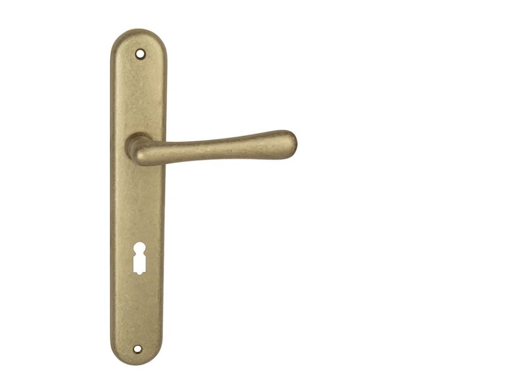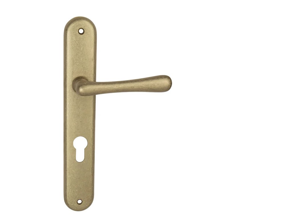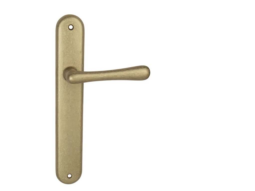 Štítová klika na interiérové dveře s oválným štítem je vyrobena z materiálů vysoké kvality - mosaz a je povrchově upravena. Oválný štít má rozměry 37 mm x 247 mm.