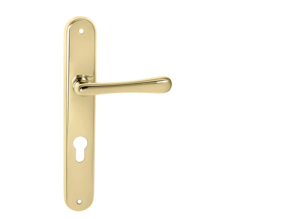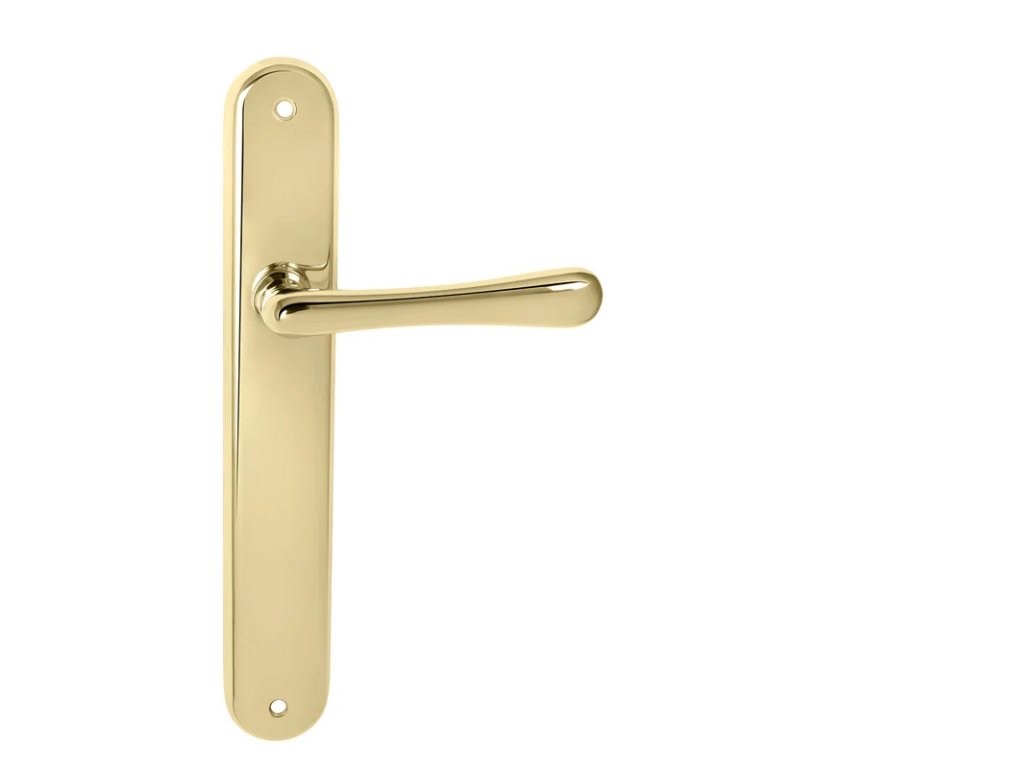 Štítová klika na interiérové dveře s oválným štítem je vyrobena z materiálů vysoké kvality - mosaz a je povrchově upravena. Oválný štít má rozměry 37 mm x 247 mm.