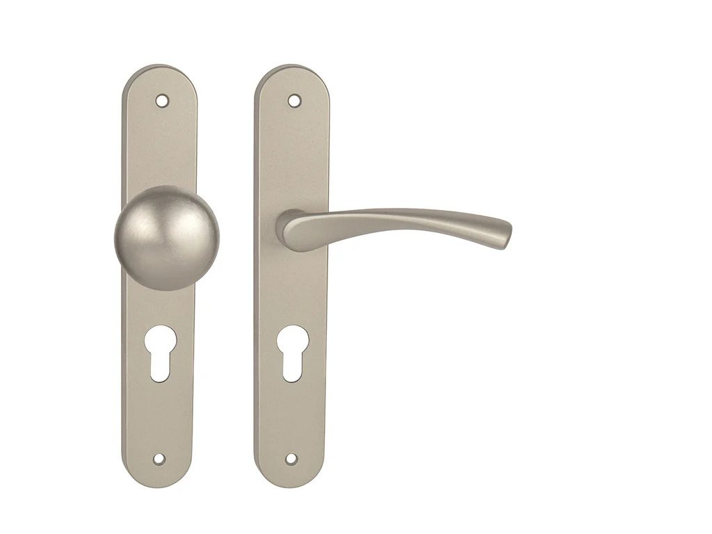 Štítová klika na interiérové dveře s oválným štítem je vyrobena z materiálů vysoké kvality - zamak a je povrchově upravena. Oválný štít má rozměry 38 mm x 227 mm.