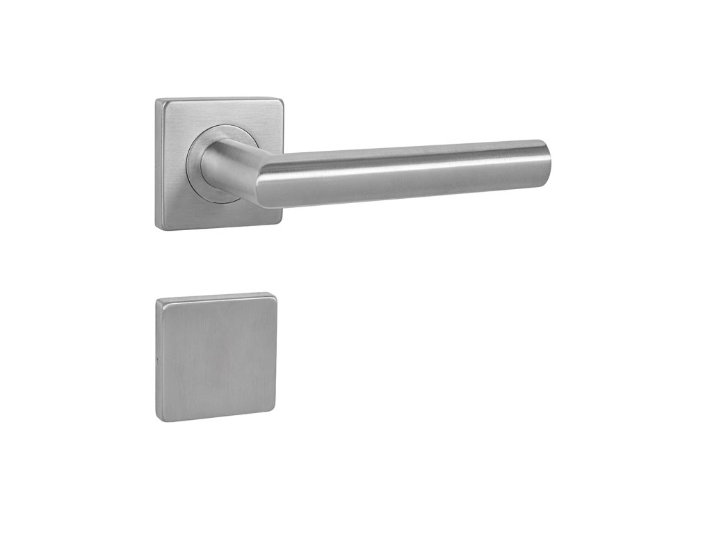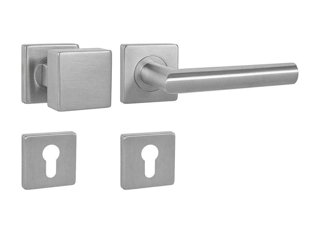 Rozetová klika na interiérové dveře s hranatou rozetou je vyrobena z vysoce kvalitní nerezavějící oceli, známé jako nerez a je povrchově upravena. Rozeta má rozměry 54 mm x 54 mm a tloušťku 9 mm. Je barevně stabilní a odolná vůči opotřebení. Kování je testováno dle normy ČSN EN 1906: 2012 na 200 000 cyklů.