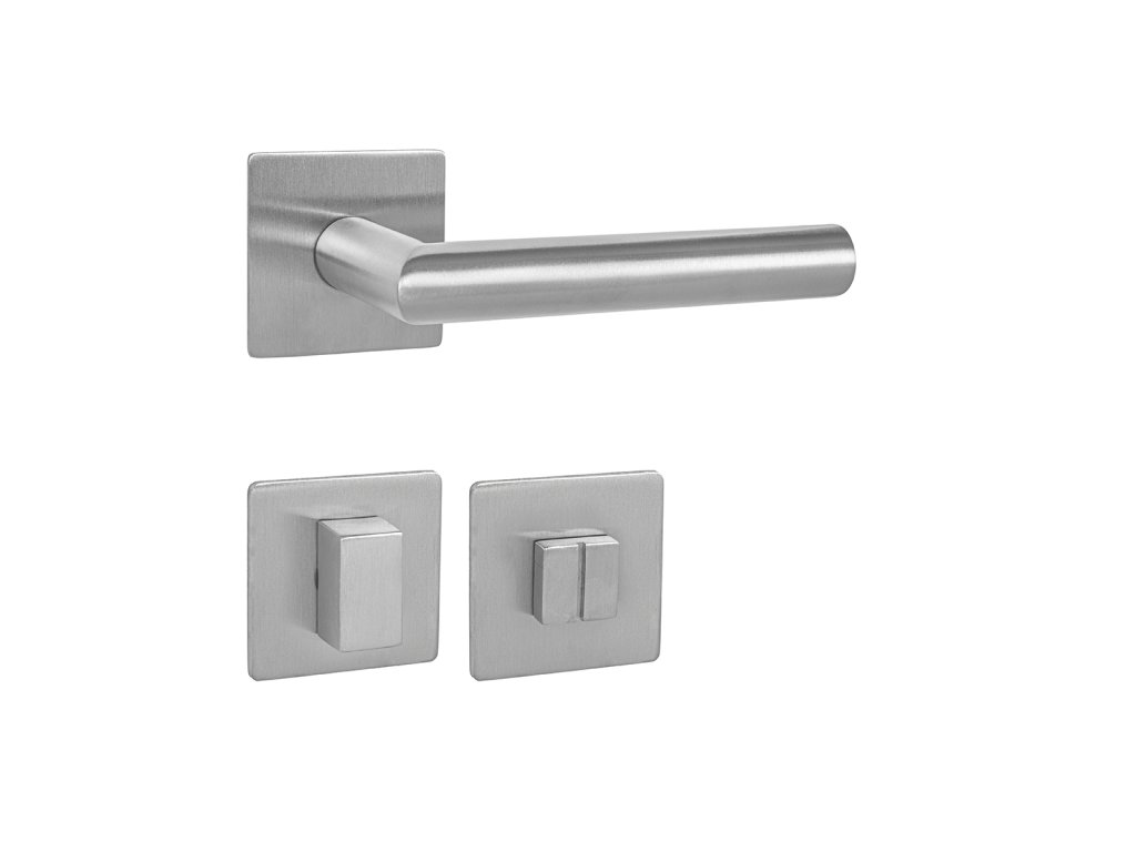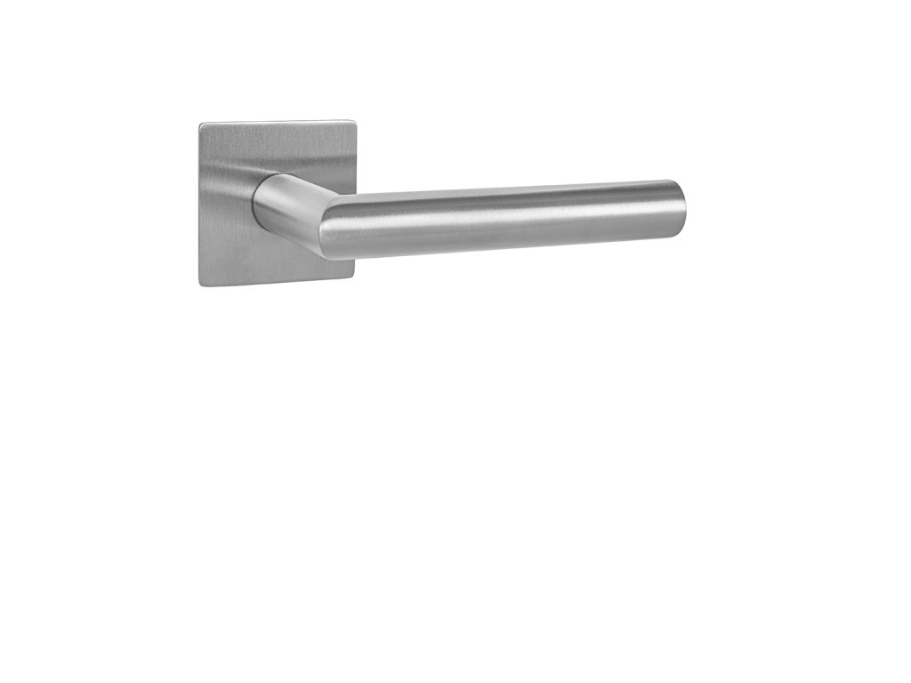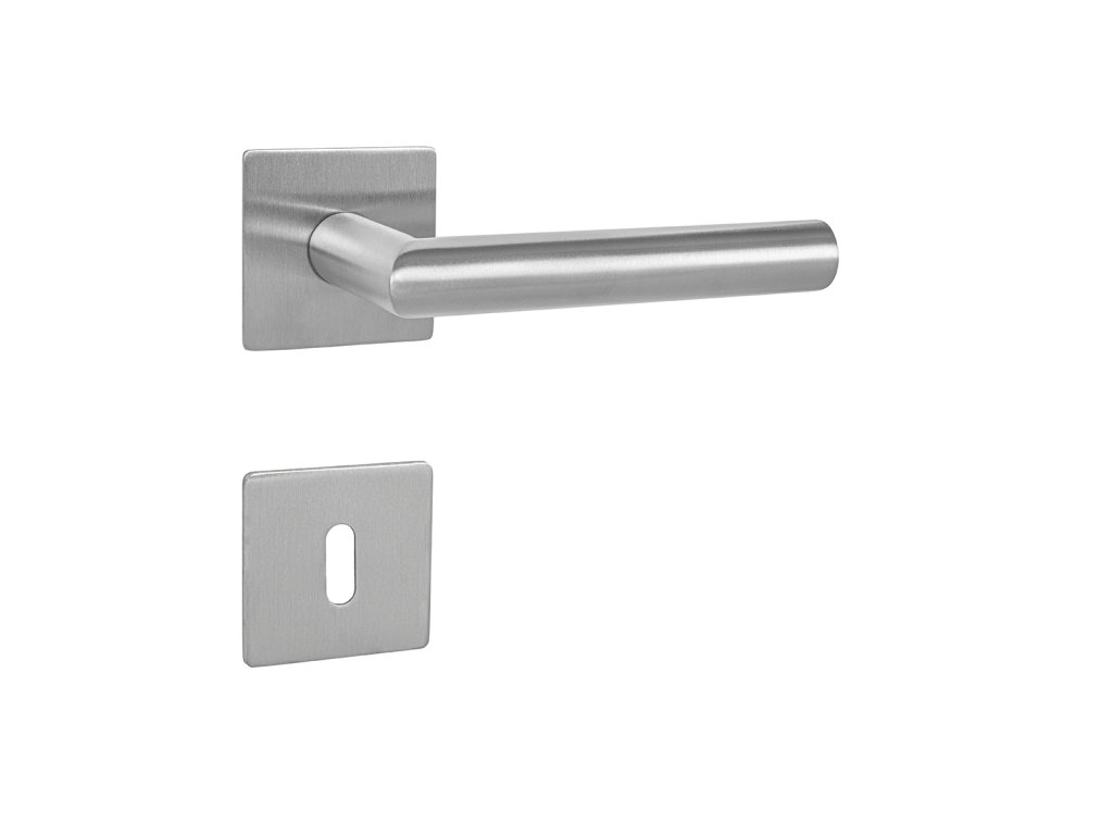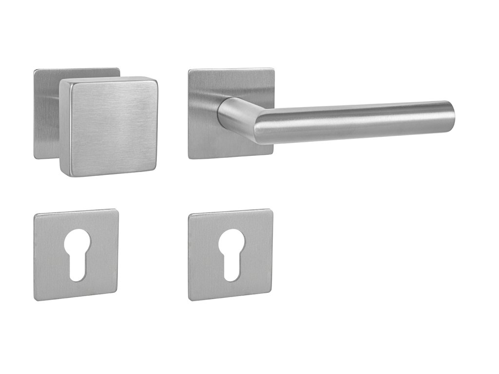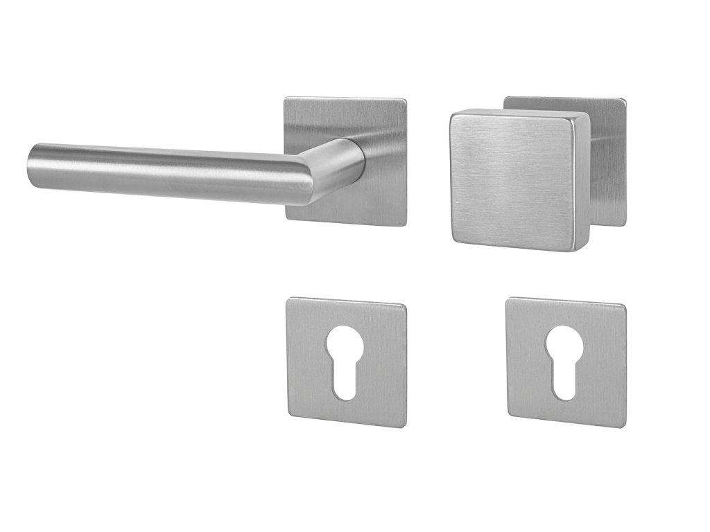 Rozetová klika na interiérové dveře s magnetickou plochou hranatou rozetou je vyrobena z vysoce kvalitní nerezavějící oceli, známé jako nerez a je povrchově upravena. Rozeta má rozměry 55 mm x 55 mm a tloušťku jen 3 mm. Je barevně stabilní a odolná vůči opotřebení. Kování je testováno podle normy EN 1906 na 200 000 cyklů.