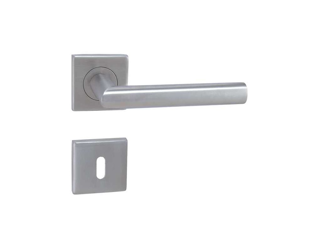 Rozetová klika na interiérové dveře s hranatou rozetou je vyrobena z vysoce kvalitní nerezavějící oceli, známé jako nerez a je povrchově upravena. Rozeta má rozměry 54 mm x 54 mm a tloušťku 9 mm. Je barevně stabilní a odolná vůči opotřebení. Kování je testováno dle normy ČSN EN 1906: 2012 na 200 000 cyklů.