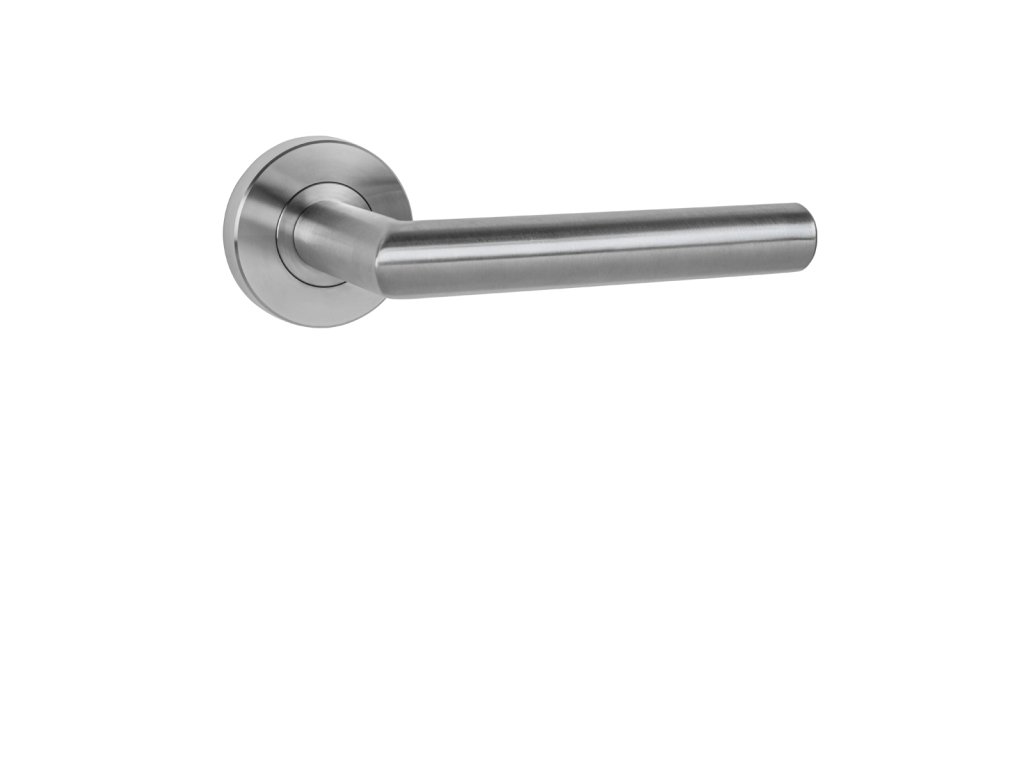 Rozetová klika na interiérové dveře s kulatou šroubovací rozetou představuje kombinaci funkčnosti a elegance pro prostředí s vysokou zátěží. Je vyrobena z vysoce kvalitní nerezavějící oceli, známé jako nerez a je povrchově upravená. Povrch je nanesen vysoce kvalitní technologií pokovování PVD, na kterou se vztahuje prodloužená 10letá záruka. Krycí rozety jsou upevněny vnitřním závitem bez viditelných spojů, který zaručuje extrémně pevný spoj a hladké přilnutí k povrchu dveří. Ergonomický úchop se seříznutou hranou poskytuje pohodlí při každém doteku. Klika je díky své robustní konstrukci obzvlášť vhodná pro prostředí s vysokou frekvencí pohybu osob, jako jsou kanceláře, veřejné budovy, nemocnice, čerpací stanice apod.
