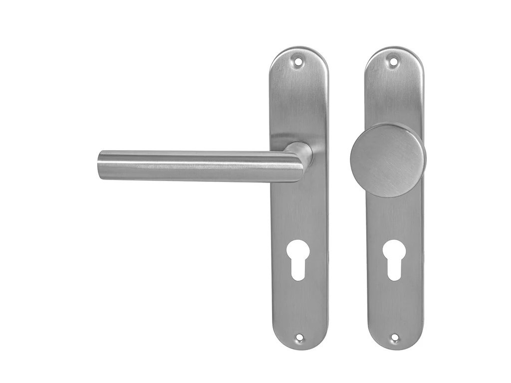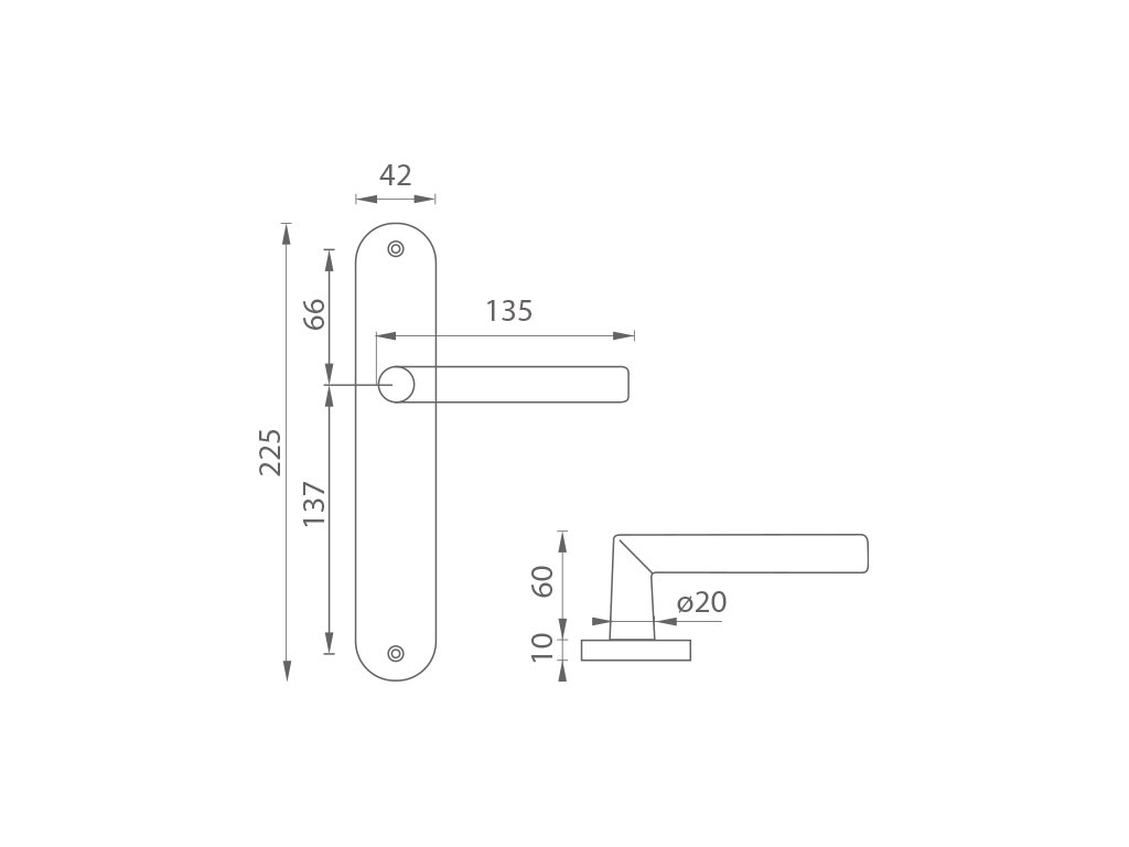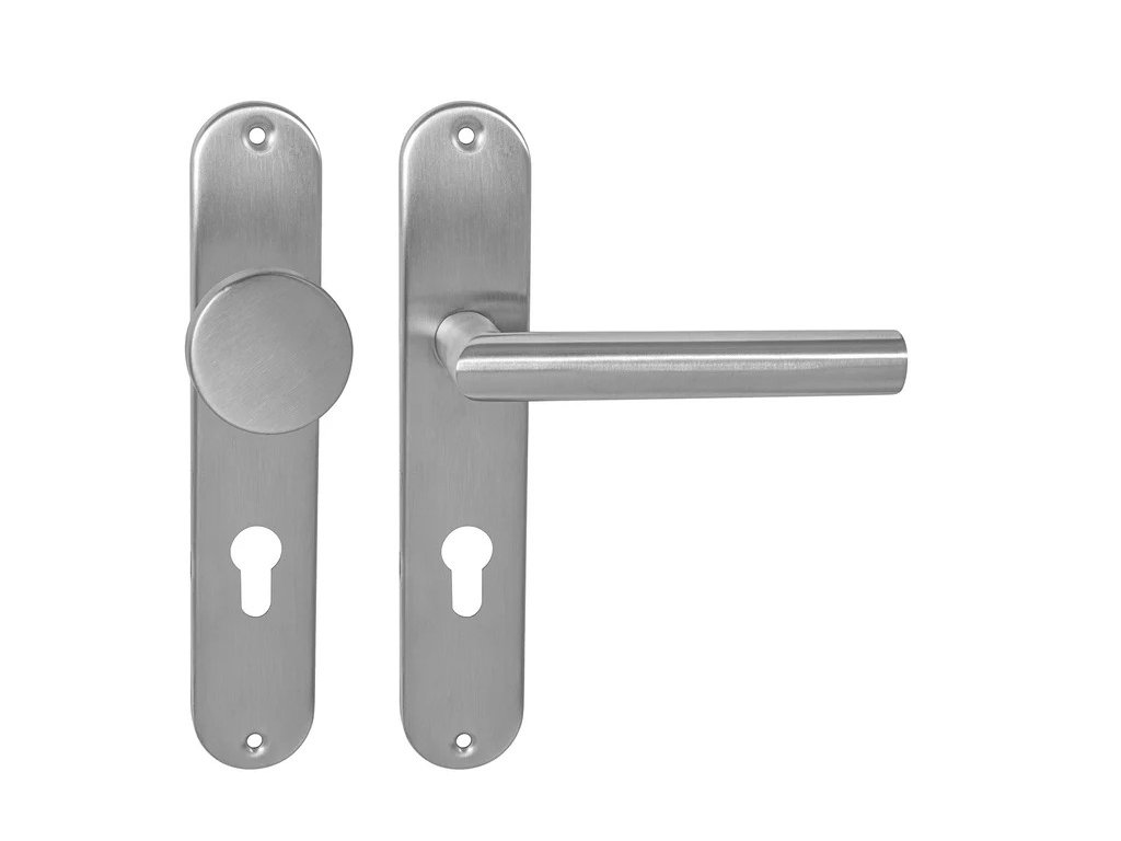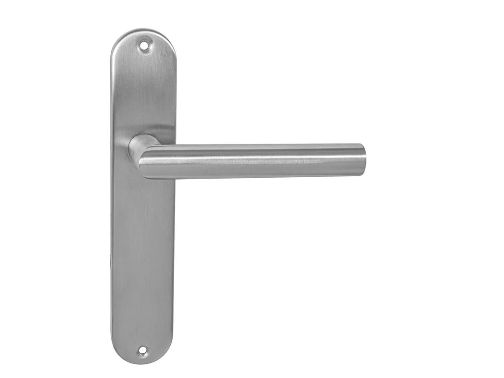 Štítová klika na interiérové dveře s oválným štítem je vyrobena z vysoce kvalitní nerezavějící oceli, známé jako nerez a je povrchově upravena. Oválný štít má rozměry 42 mm x 225 mm.