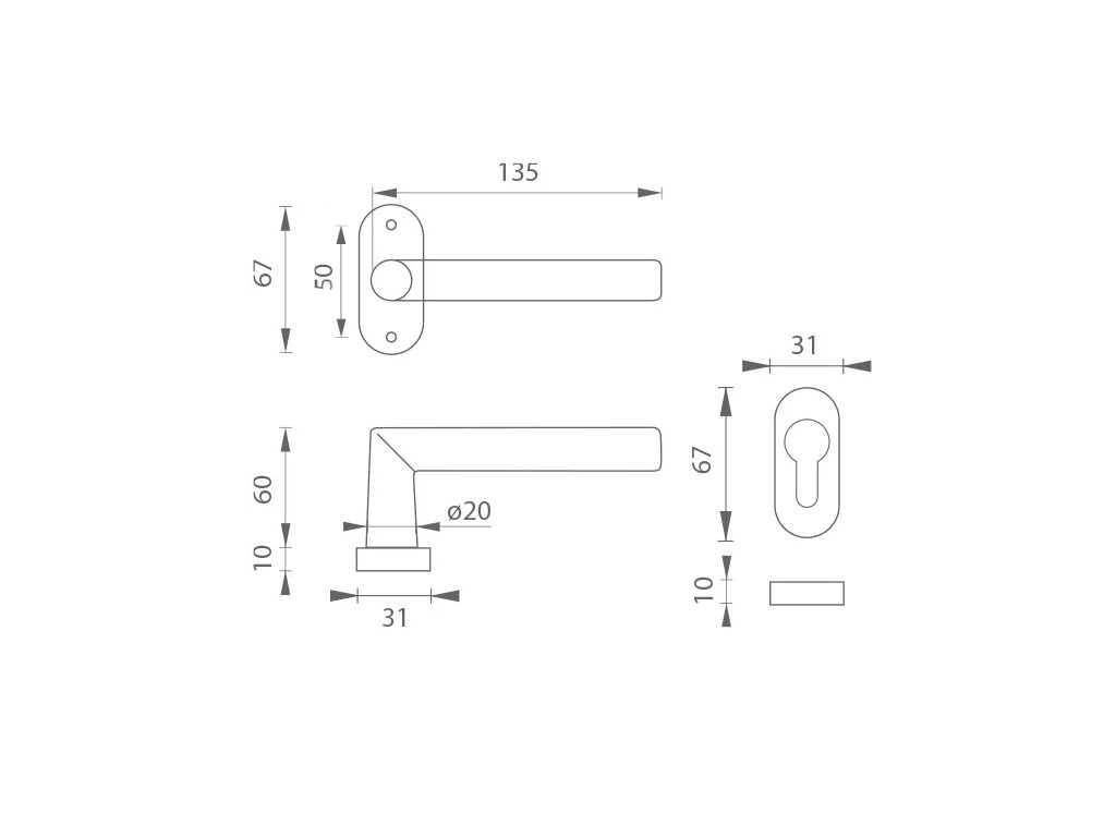 Rozměry rozety: 67 mm x 31 mm