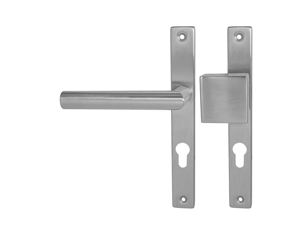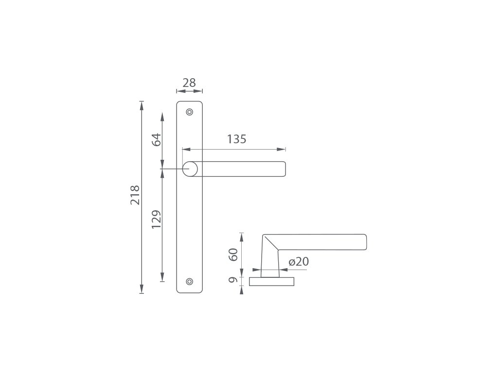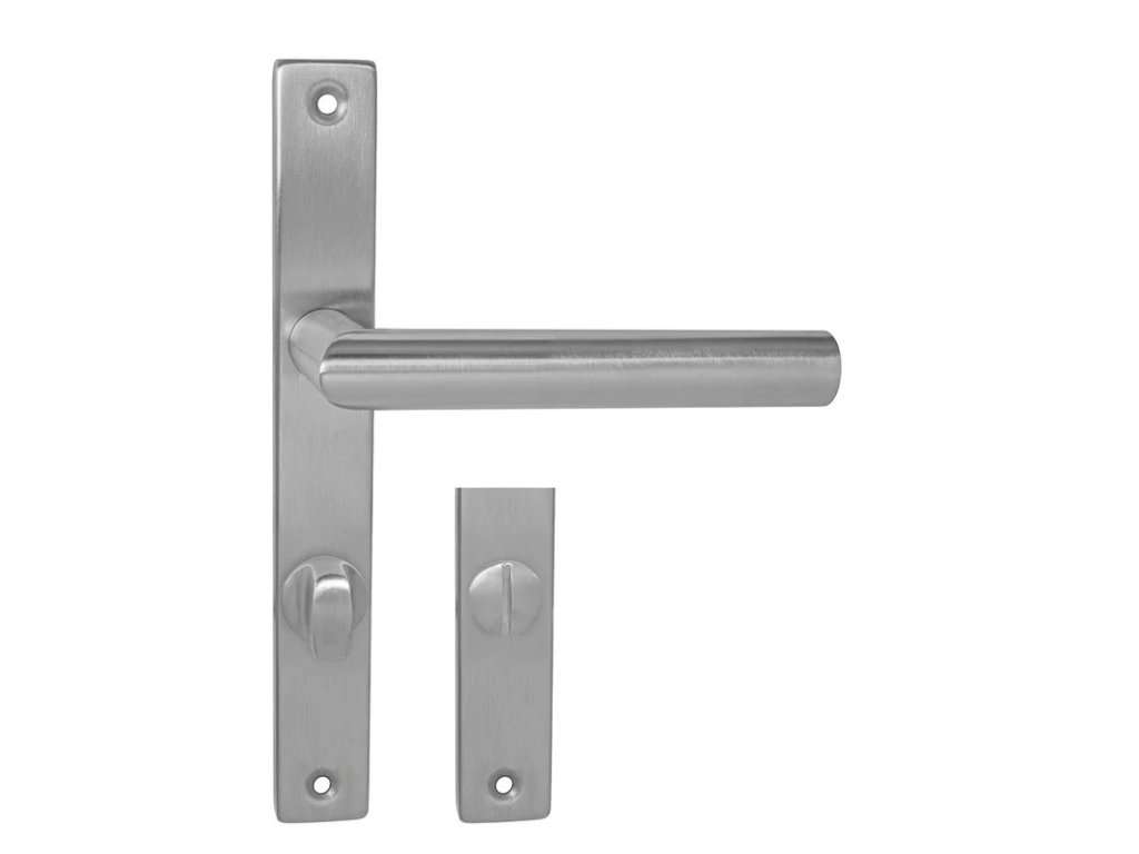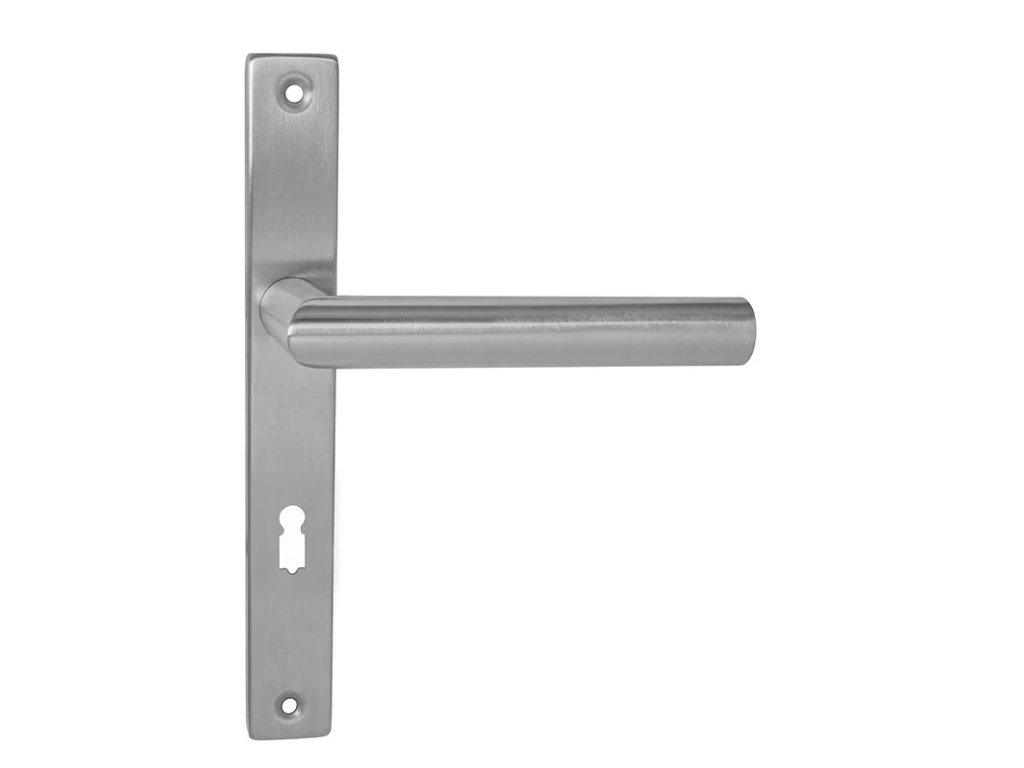 Štítová klika na interiérové dveře s úzkým hranatým štítem je vyrobena z vysoce kvalitní nerezavějící oceli, známé jako nerez a je povrchově upravena. Úzký hranatý štít má rozměry 28 mm x 218 mm.