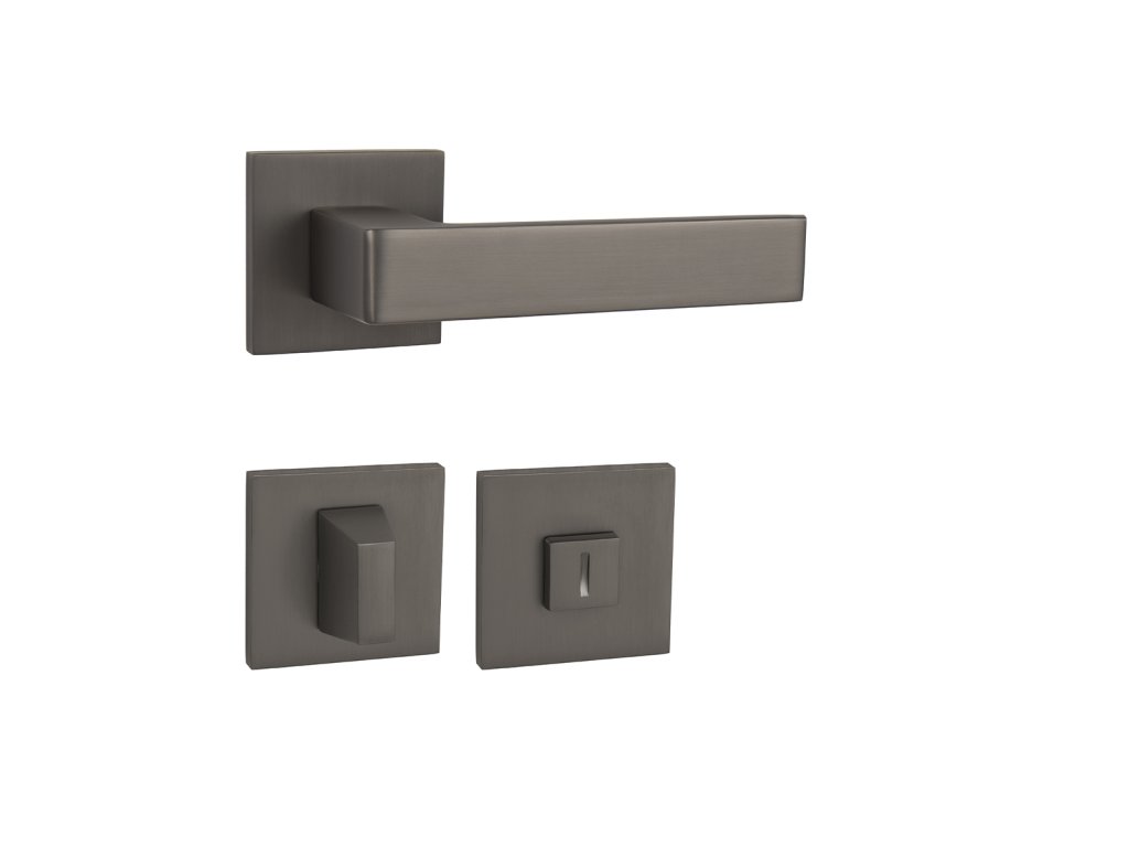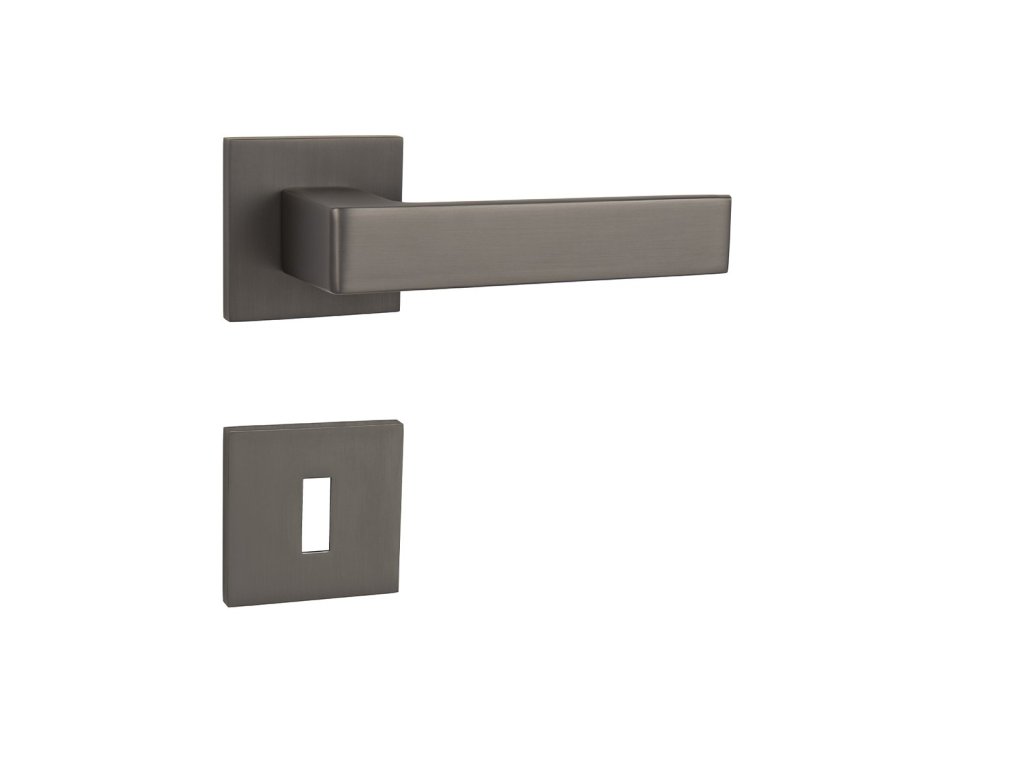 Rozetová klika na interiérové dveře s hranatou rozetou je vyrobena odléváním z kvalitních slitin zinku a hliníku a je povrchově upravena. Klika je povrchově upravována galvanizací a vyznačuje se vysokou odolností proti oděru. Kování je testováno na 100 000 cyklů.