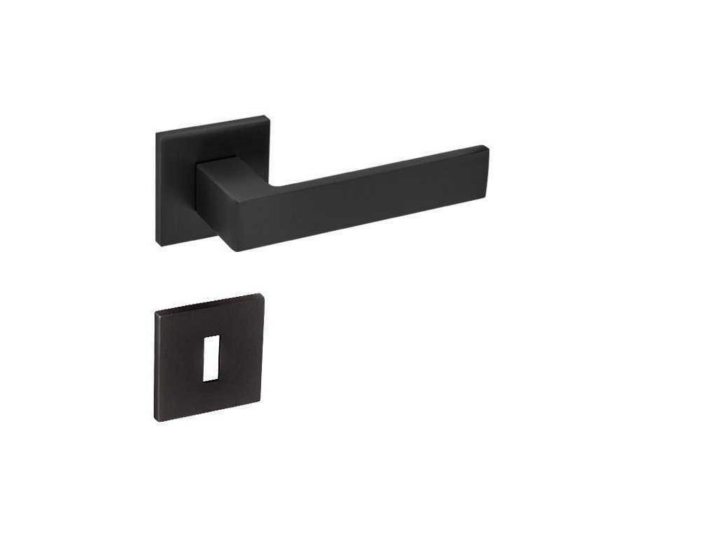 Rozetová klika na interiérové dveře s hranatou rozetou je vyrobena odléváním z kvalitních slitin zinku a hliníku a je povrchově upravena.