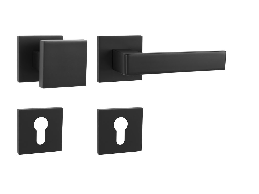 Rozetová klika na interiérové dveře s hranatou rozetou je vyrobena odléváním z kvalitních slitin zinku a hliníku a je povrchově upravena. Klika je povrchově upravována galvanizací a vyznačuje se vysokou odolností proti oděru. Kování je testováno na 100 000 cyklů.