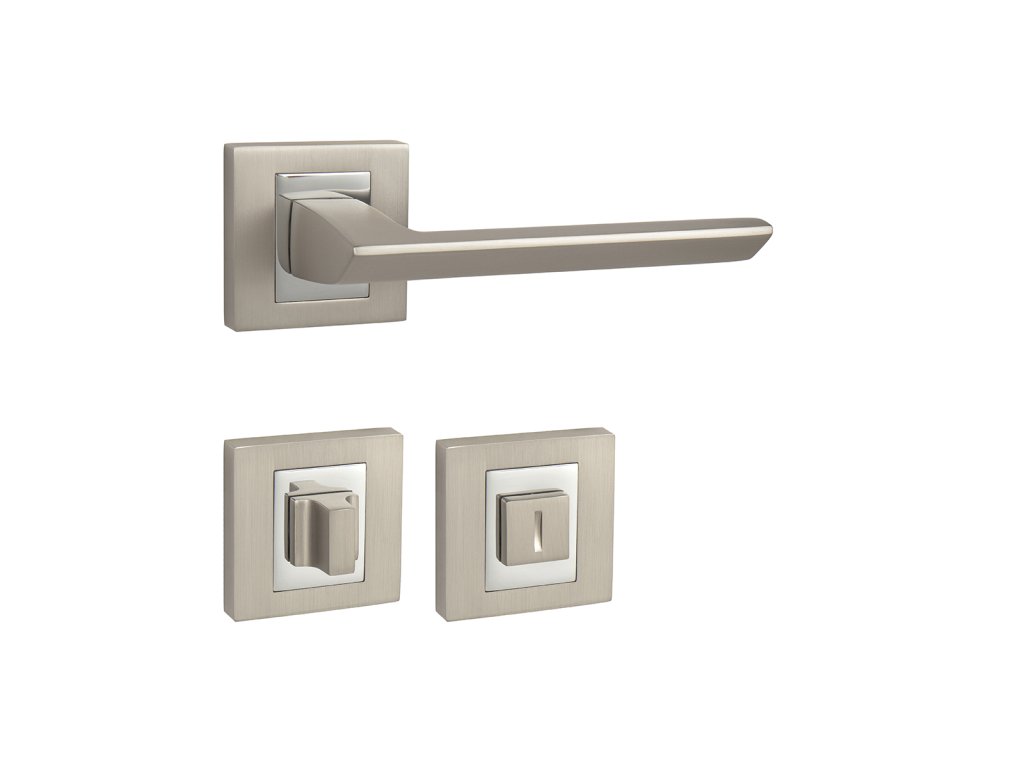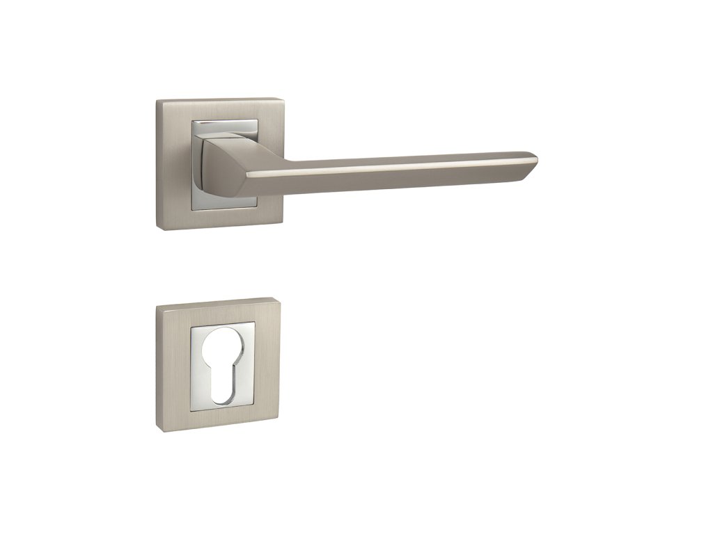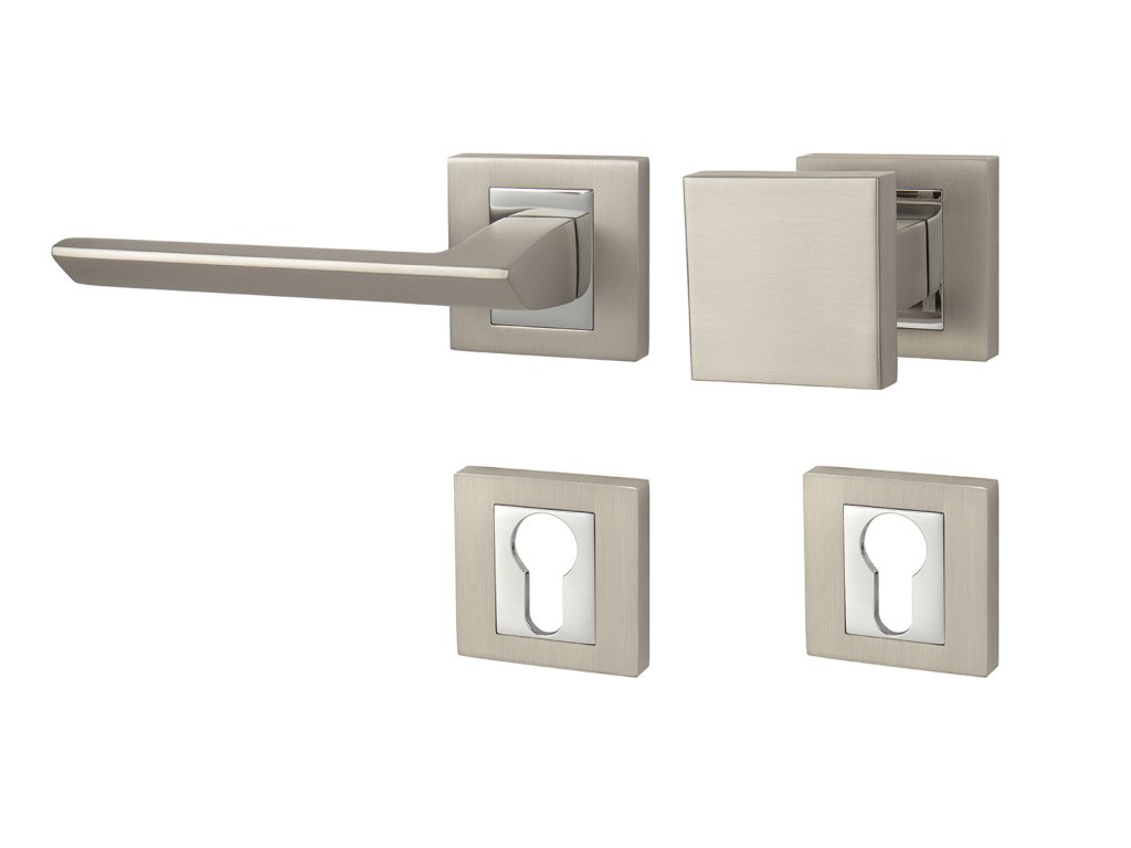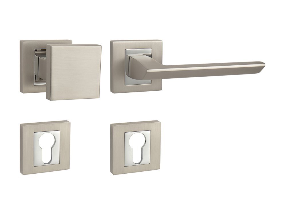 Rozetová klika na interiérové dveře s hranatou rozetou je vyrobena odléváním z kvalitních slitin zinku a hliníku a je povrchově upravena. Rozeta má rozměry 52 mm x 52 mm a tloušťku 10 mm. Klika je povrchově upravována galvanizací a vyznačuje se vysokou odolností proti korozi. Kování je testováno na 100 000 cyklů.