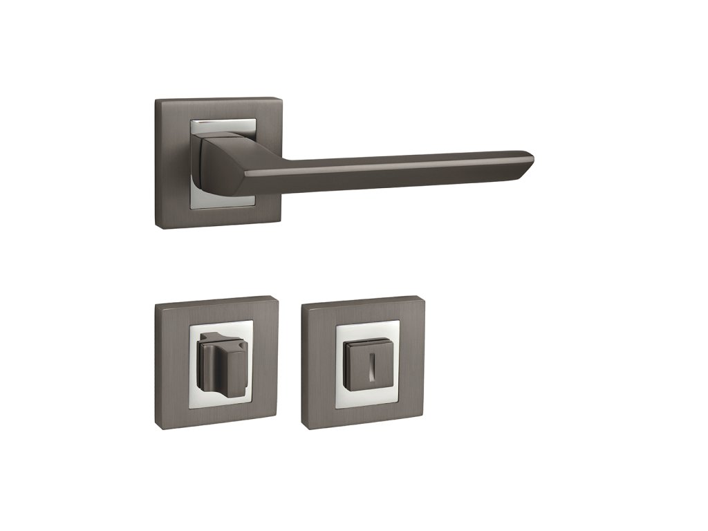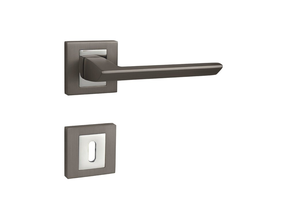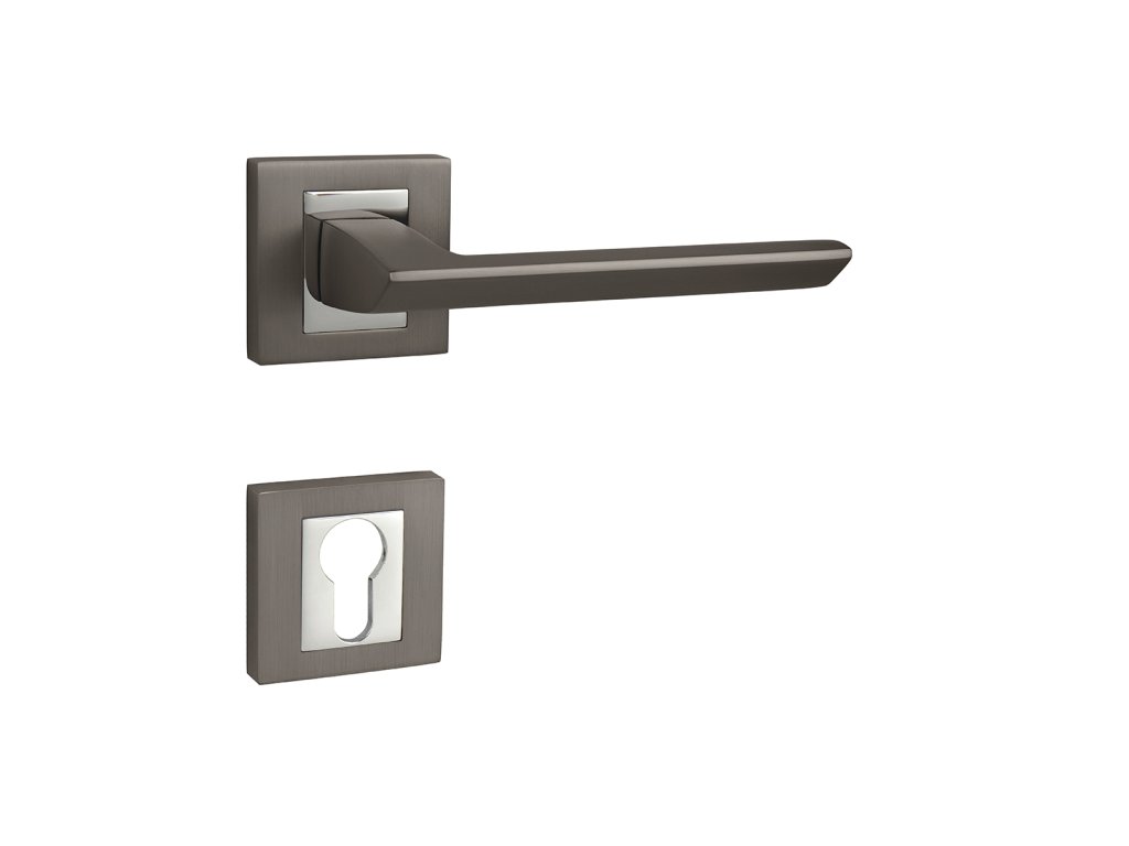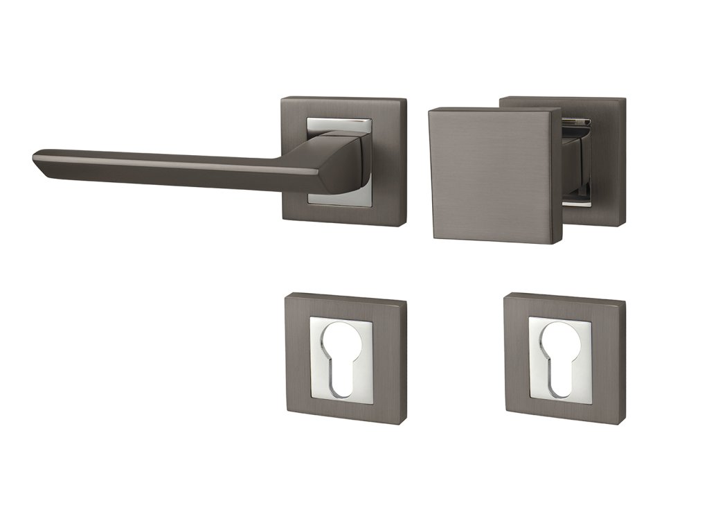 Rozetová klika na interiérové dveře s hranatou rozetou je vyrobena odléváním z kvalitních slitin zinku a hliníku a je povrchově upravena. Rozeta má rozměry 52 mm x 52 mm a tloušťku 10 mm. Klika je povrchově upravována galvanizací a vyznačuje se vysokou odolností proti korozi. Kování je testováno na 100 000 cyklů.