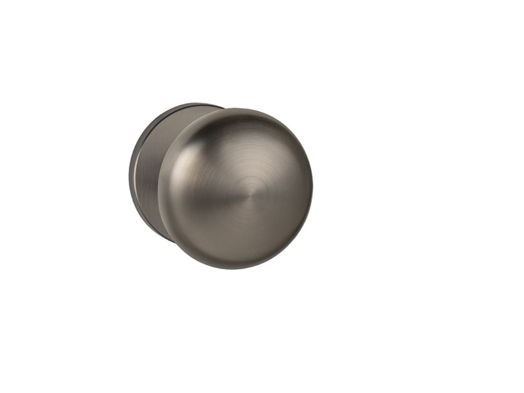 Dveřní pevná přímá koule na kulaté rozetě je vyrobená ze zamaku - slitiny zinku a hliníku a je povrchově upravená.