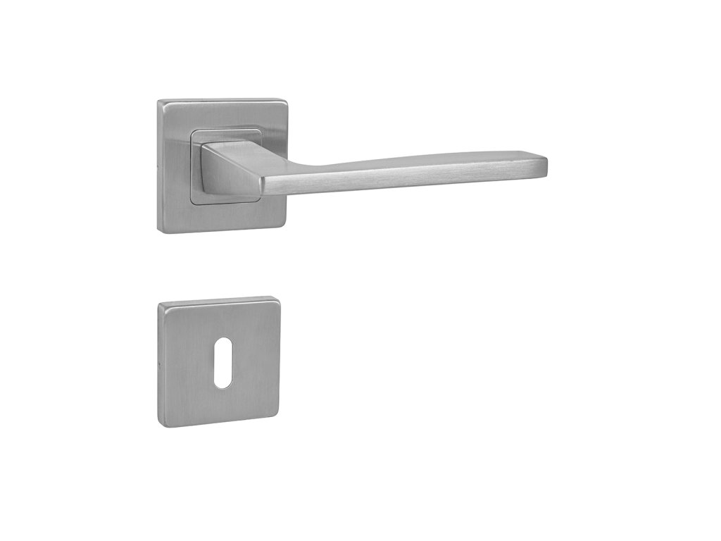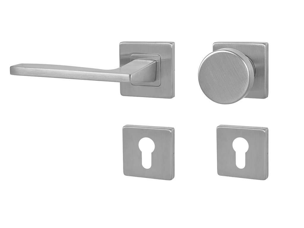 Rozetová klika na interiérové dveře s hranatou rozetou je vyrobena z vysoce kvalitní nerezavějící oceli, známé jako nerez a je povrchově upravena. Rozeta má rozměry 54 mm x 54 mm a tloušťku 9 mm. Je barevně stabilní a odolná vůči opotřebení. Kování je testováno dle normy ČSN EN 1906: 2012 na 200 000 cyklů.