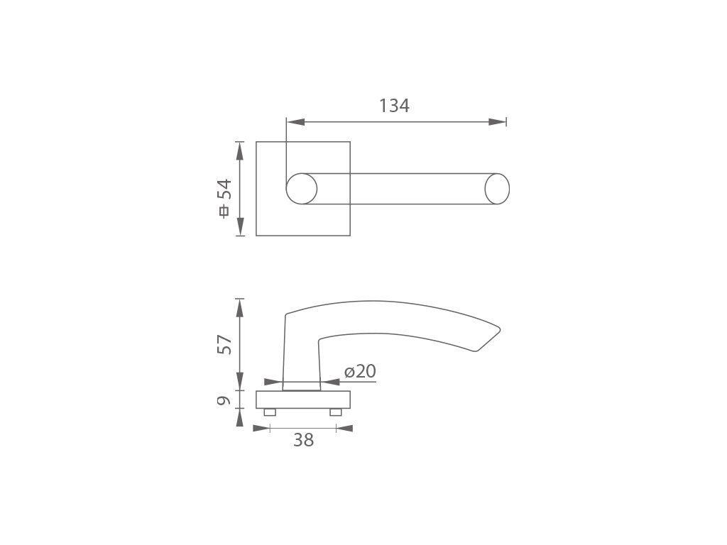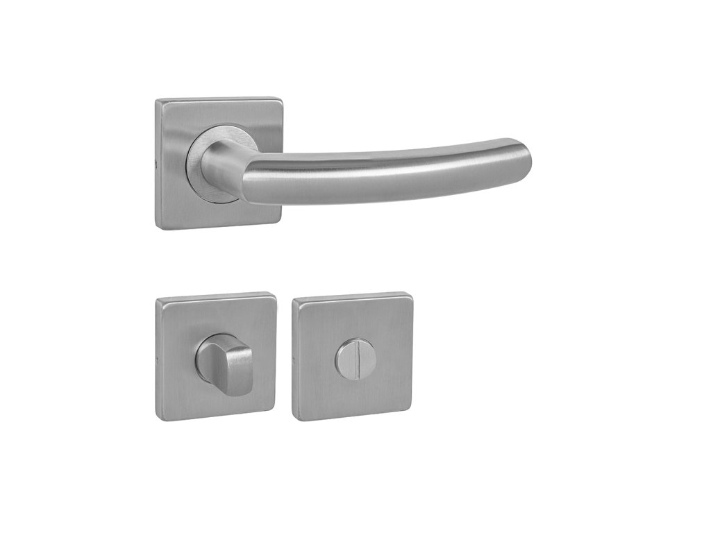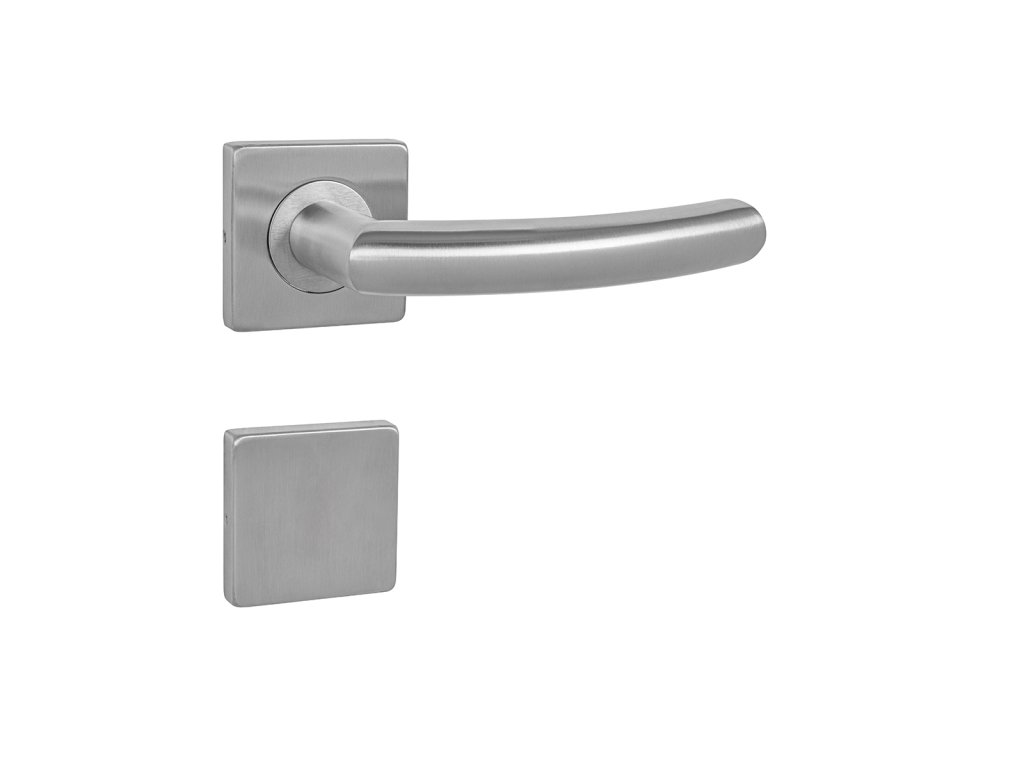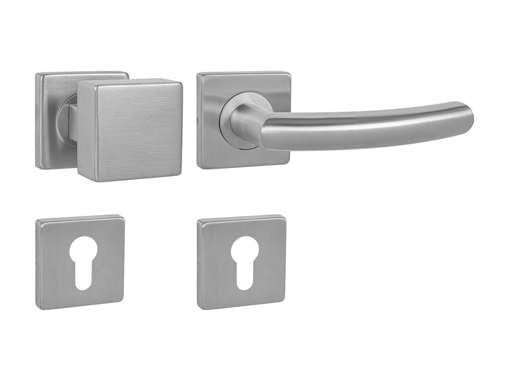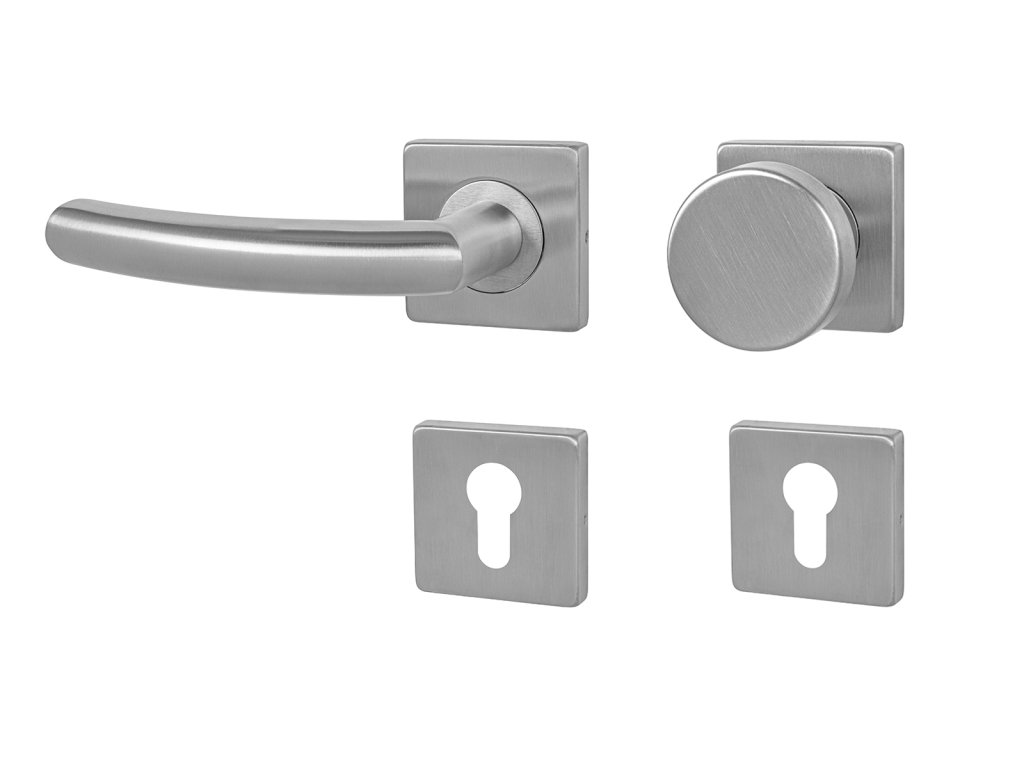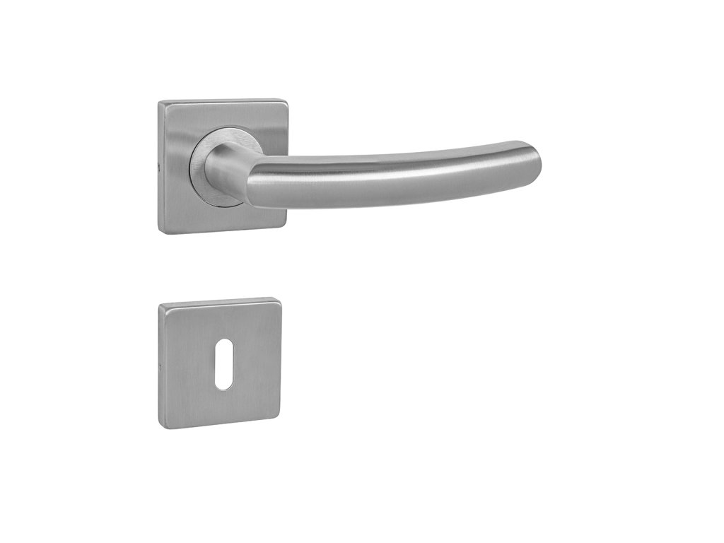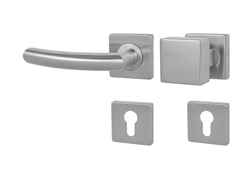 Rozetová klika na interiérové dveře s hranatou rozetou je vyrobena z vysoce kvalitní nerezavějící oceli, známé jako nerez a je povrchově upravena. Rozeta má rozměry 54 mm x 54 mm a tloušťku 9 mm. Je barevně stabilní a odolná vůči opotřebení. Kování je testováno dle normy ČSN EN 1906: 2012 na 200 000 cyklů.
