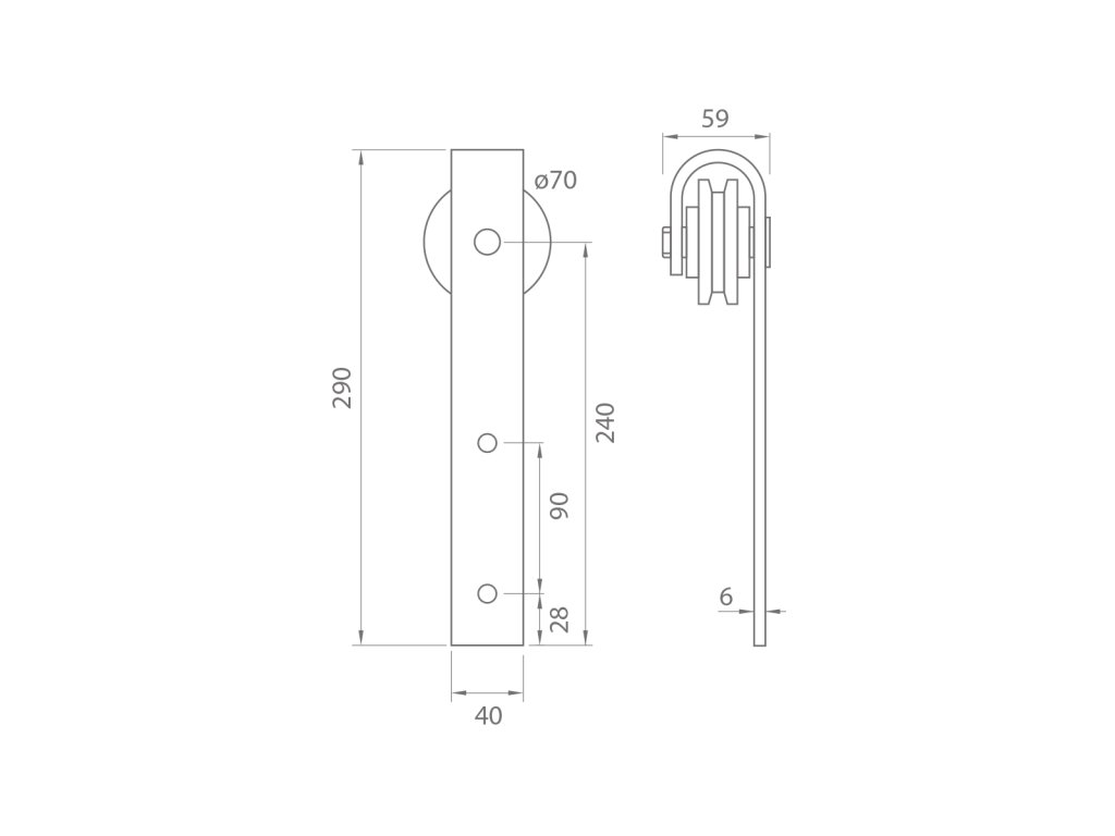 Maximální doporučená váha zavěšených dveří je 85 kg. Doporučená tloušťka dveří je 45 - 55 mm.