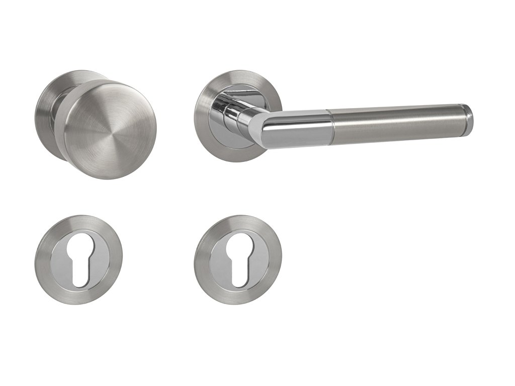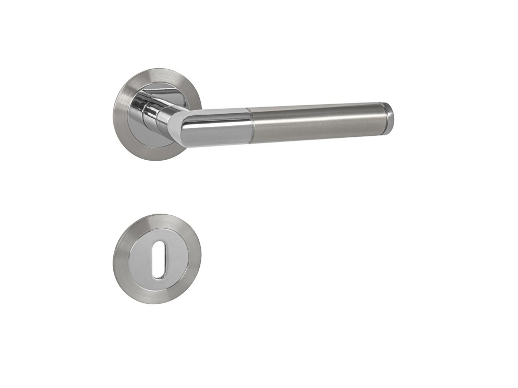 Rozetová klika na interiérové dveře s magnetickou plochou kulatou rozetou z vysoce kvalitní nerezavějící oceli, známé jako nerez a je povrchově upravena. Rozeta má průměr 55 mm a tloušťku jen 3 mm.