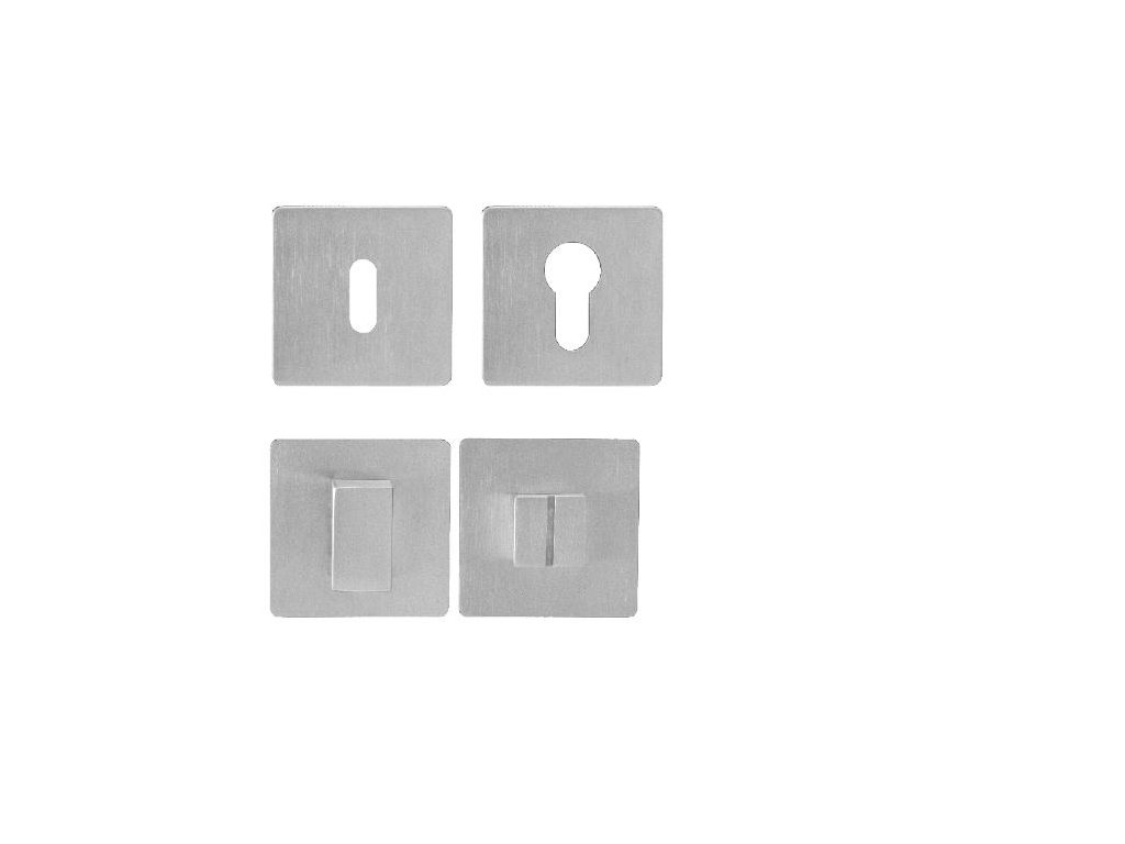 Hranatá rozeta je vyrobena z vysoce kvalitní nerezavějící oceli, známé jako nerez a je povrchově upravena. Rozeta má rozměry 55 mm x 55 mm, tloušťku jen 3 mm a oválný otvor pro interiérový klíč (BB), otvor pro cylindrickou vložku (PZ) nebo WC set s vmontovaným klíčem. Balení obsahuje 2 kusy rozet (pár) a rozety WC jsou v balení jako set.