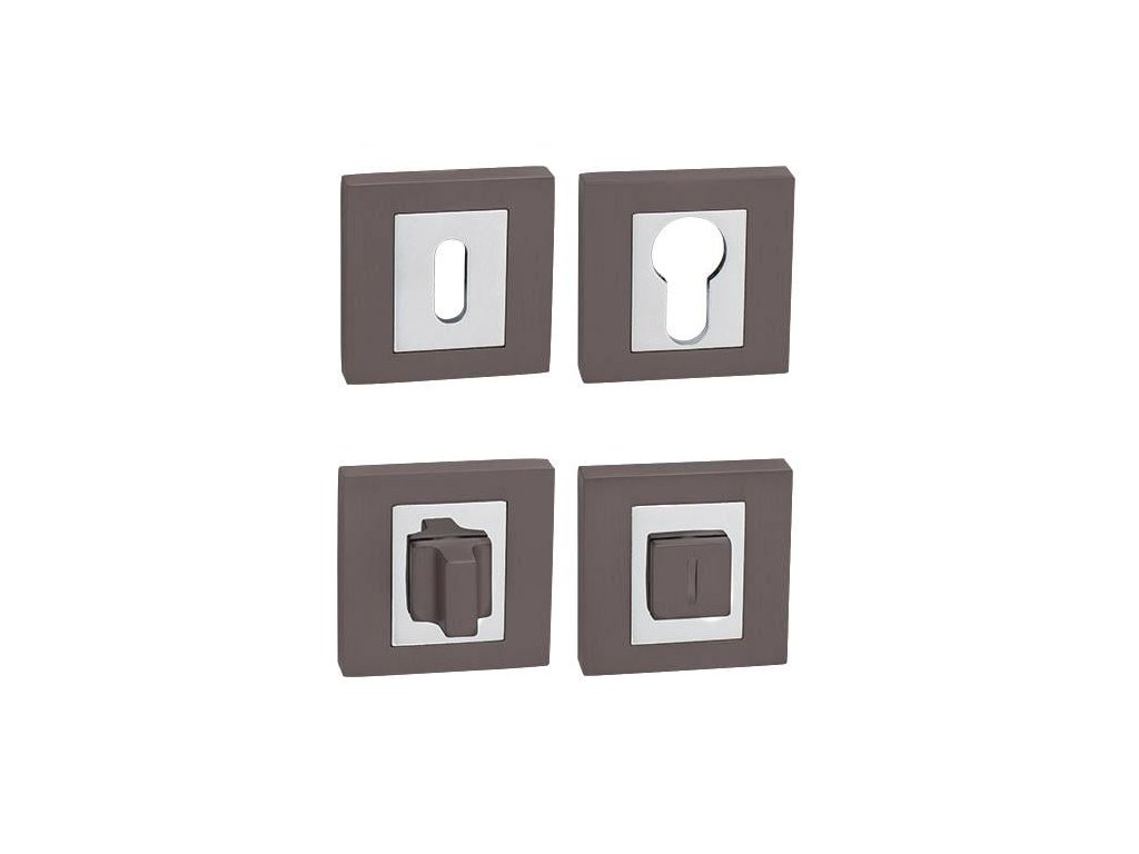 Hranatá rozeta je vyrobena ze zamaku a hliníku a je povrchově upravena. Rozeta má rozměry 52 mm x 52 mm, tloušťku 10 mm a oválný otvor pro interiérový klíč (BB), otvor pro cylindrickou vložku (PZ) nebo WC set s vmontovaným klíčem. Balení obsahuje 2 kusy rozet (pár) a rozety WC jsou v balení jako set. p>